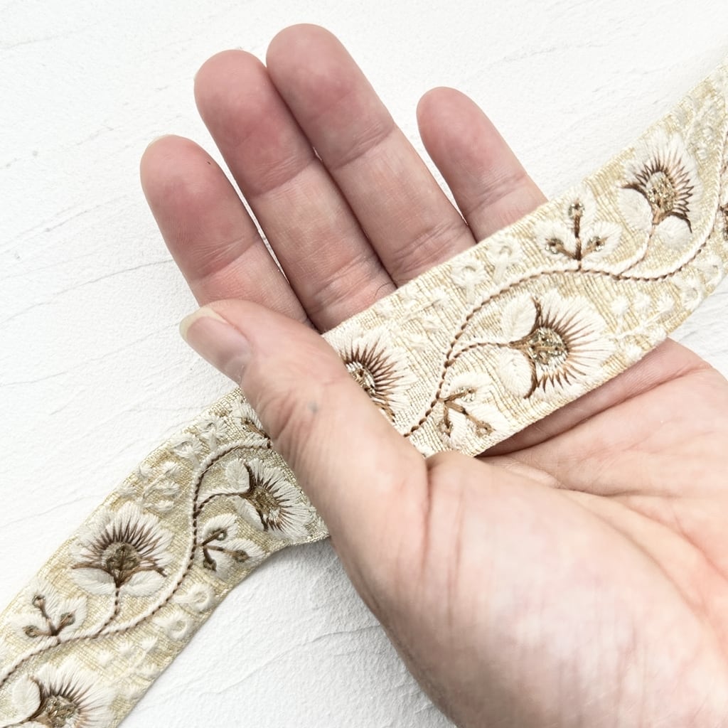 1ロール ソフィアスリム[シャンパンゴールド]インド刺繍リボン 3029-1R
