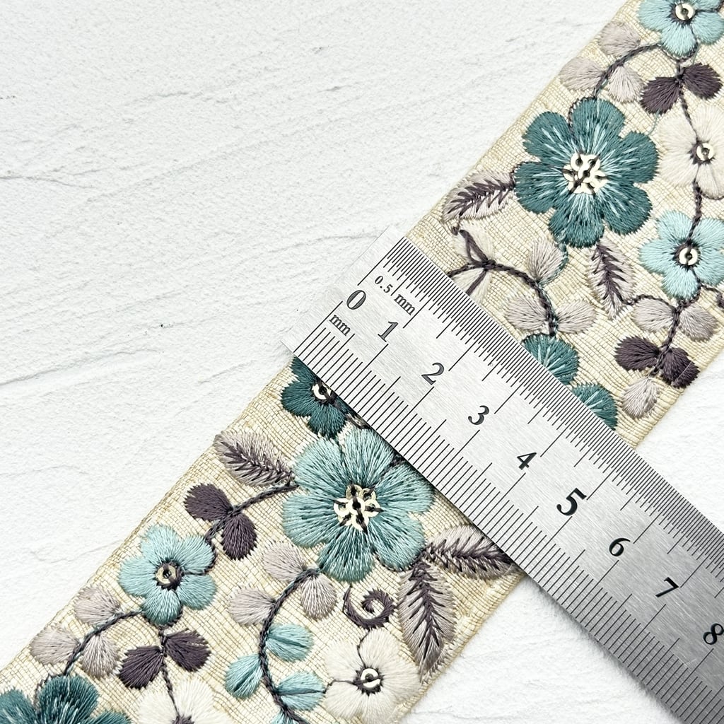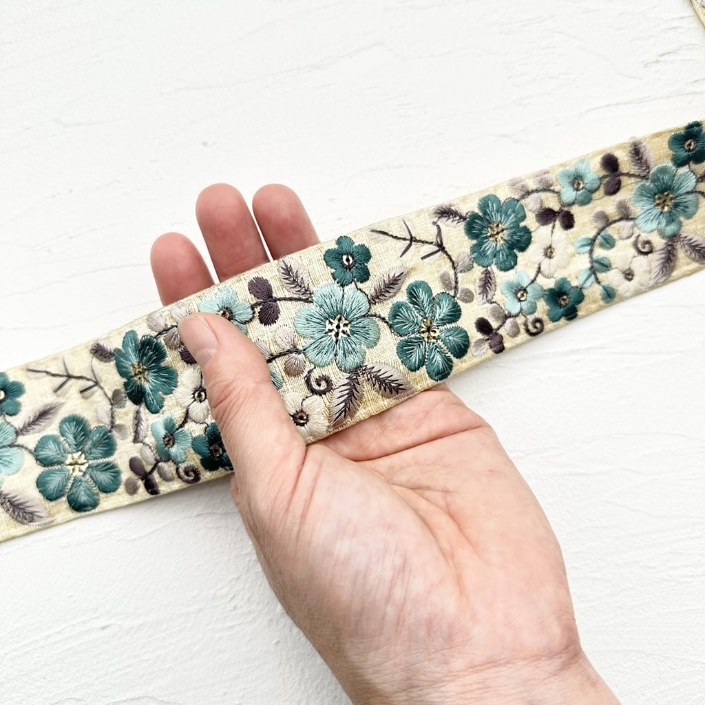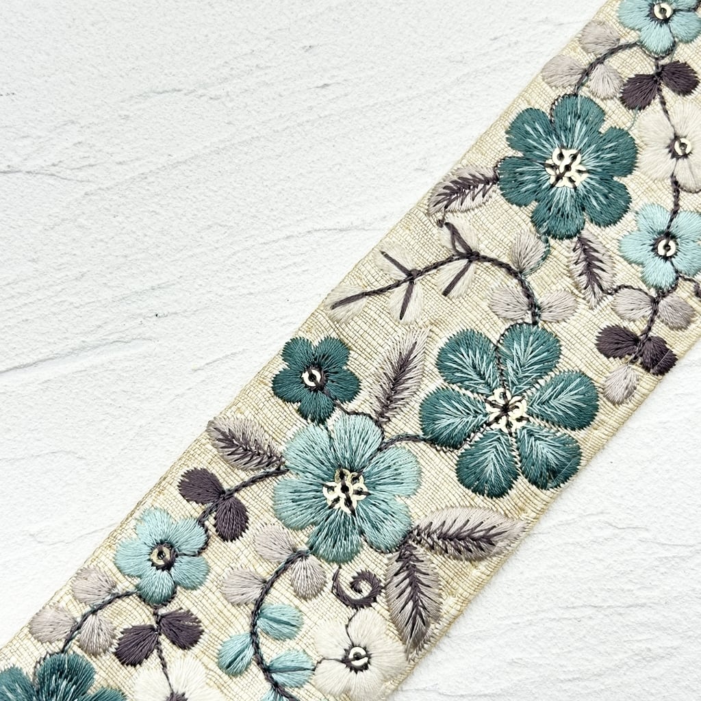 [ターコイズアイボリー]インド刺繍リボン 2977