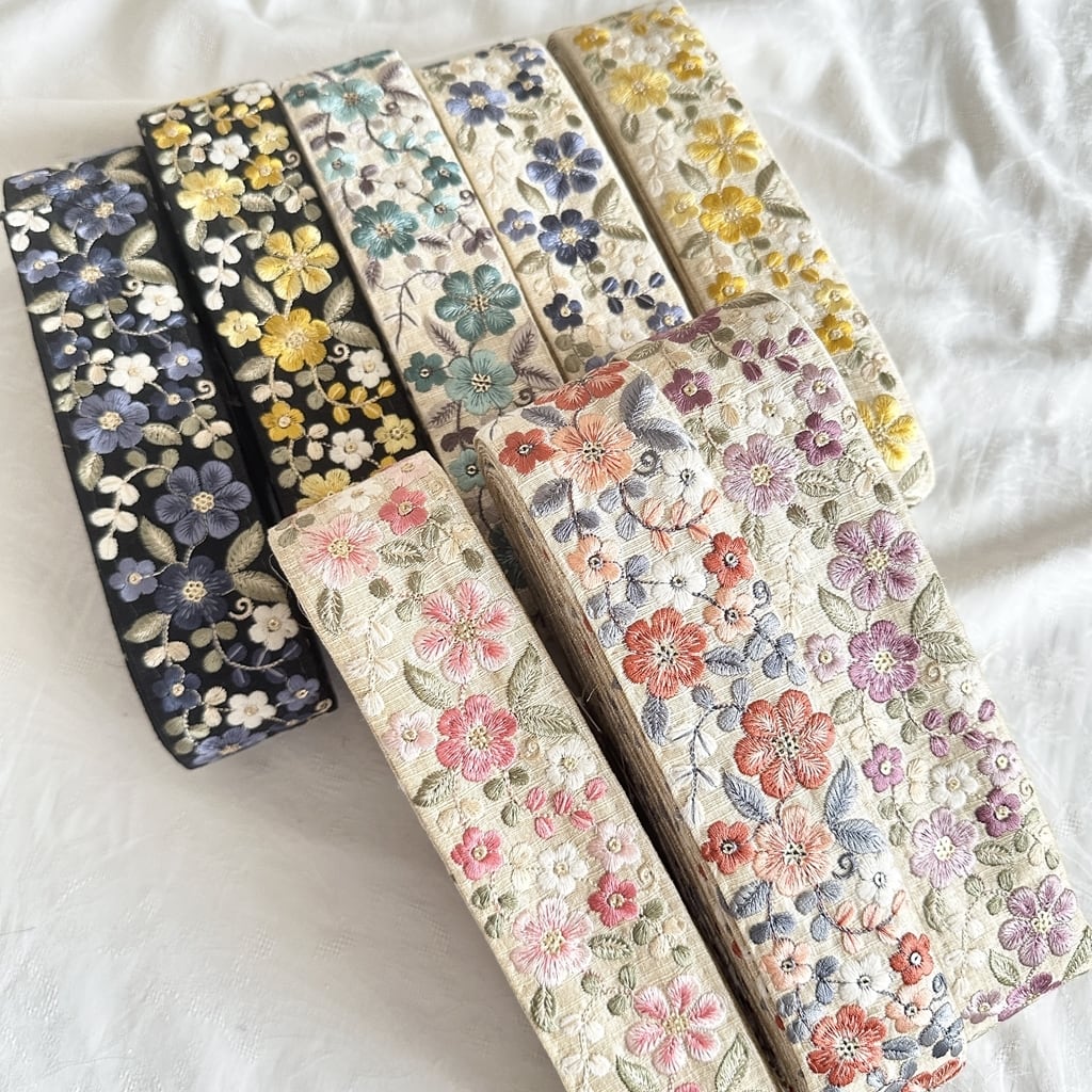 インド刺繍リボンは、細かい刺繍が施されていて色も鮮やかなリボンです。