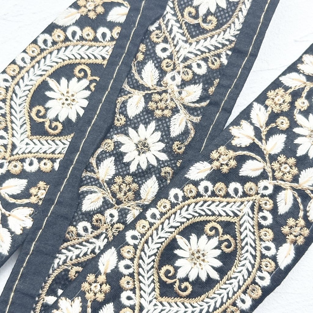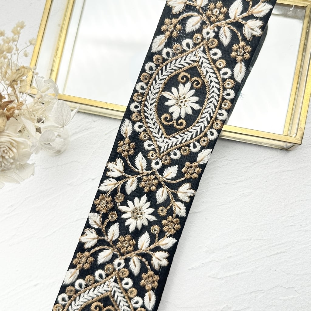 [ブラック]インド刺繍リボン 2920