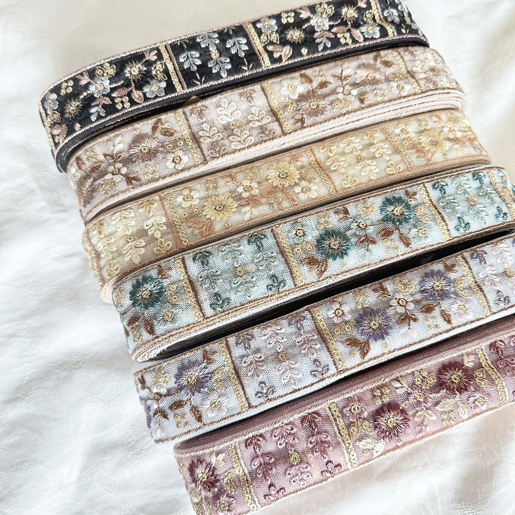 インド刺繍リボンは、細かい刺繍が施されていて色も鮮やかなリボンです。