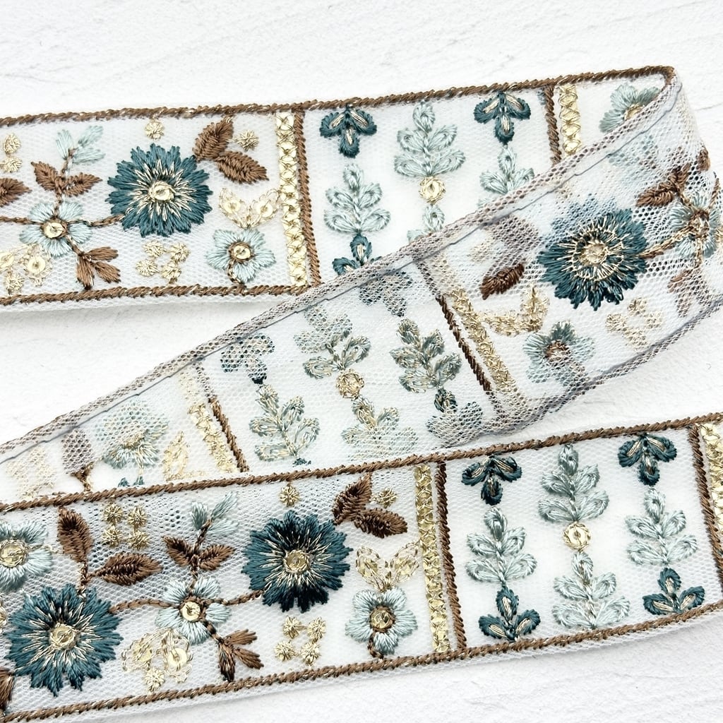 インド刺繍リボンは、細かい刺繍が施されていて色も鮮やかなリボンです。