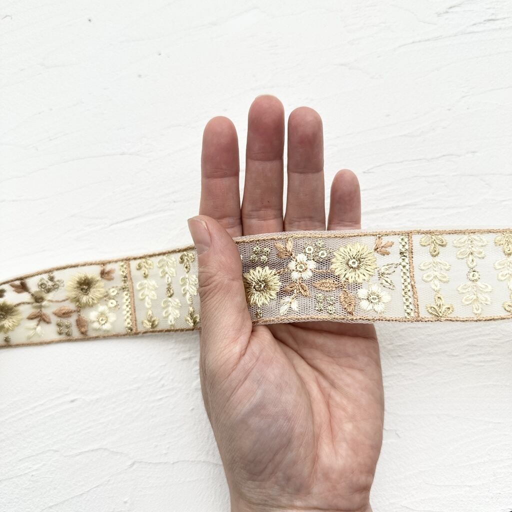 インド刺繍リボンは、細かい刺繍が施されていて色も鮮やかなリボンです。