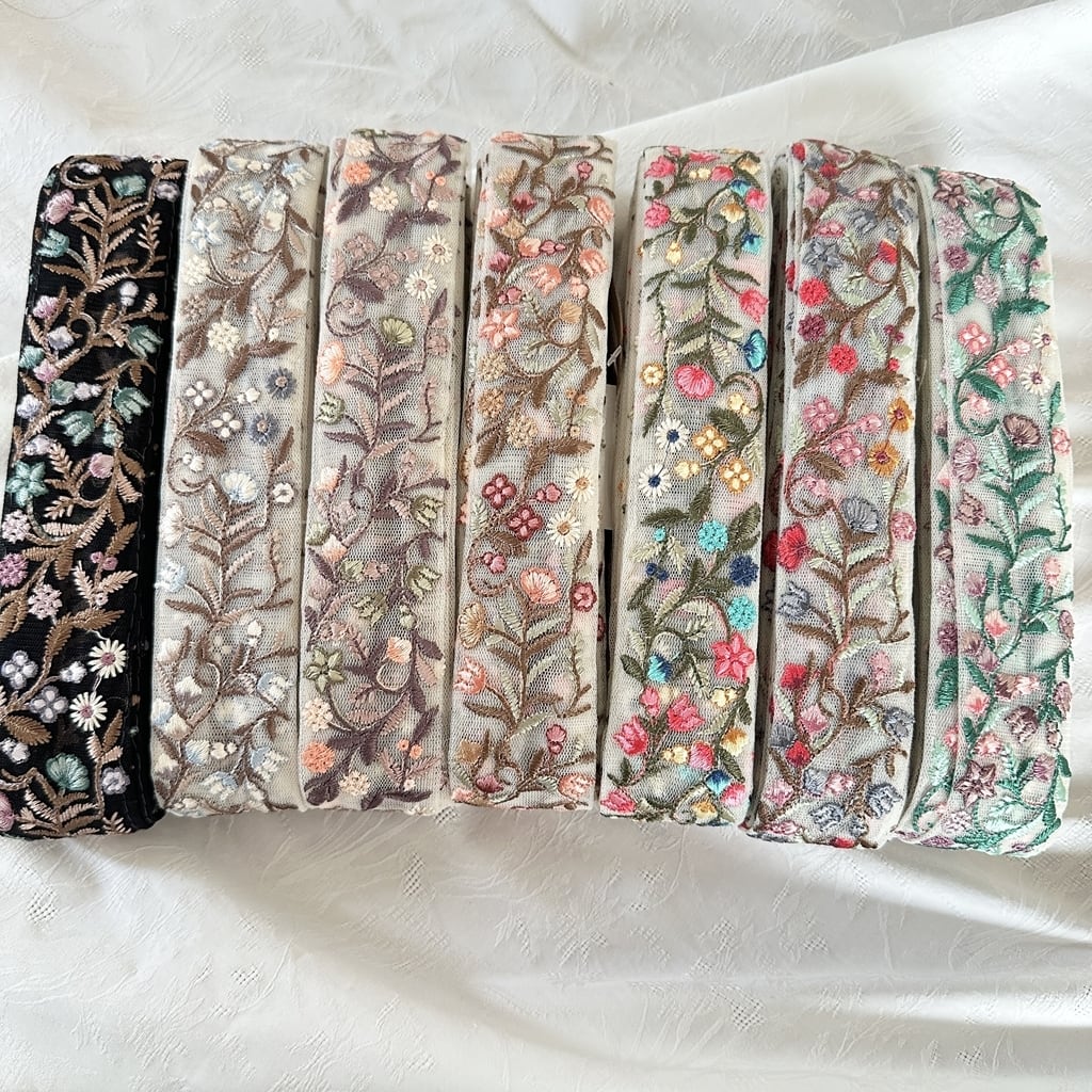 インド刺繍リボンは、細かい刺繍が施されていて色も鮮やかなリボンです。