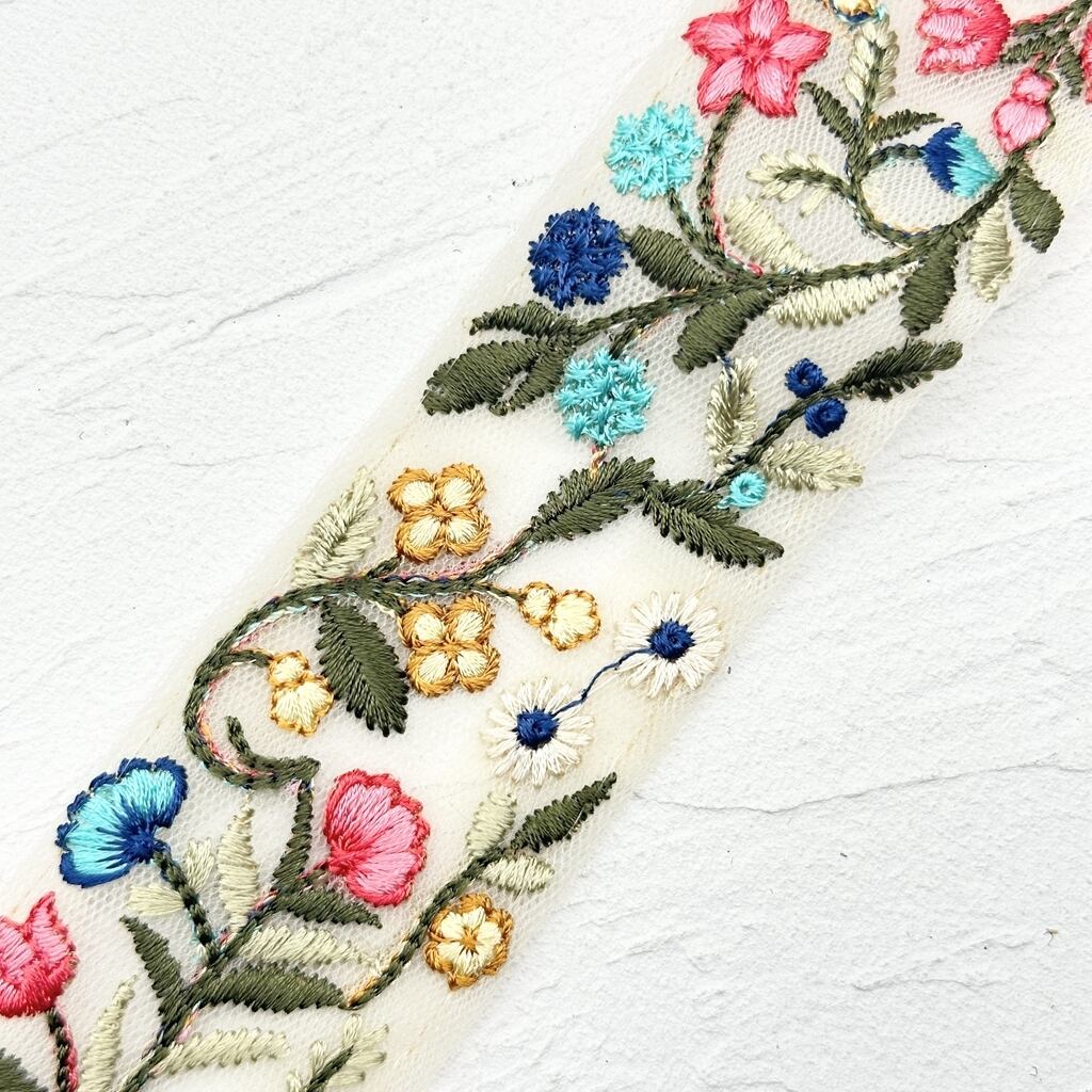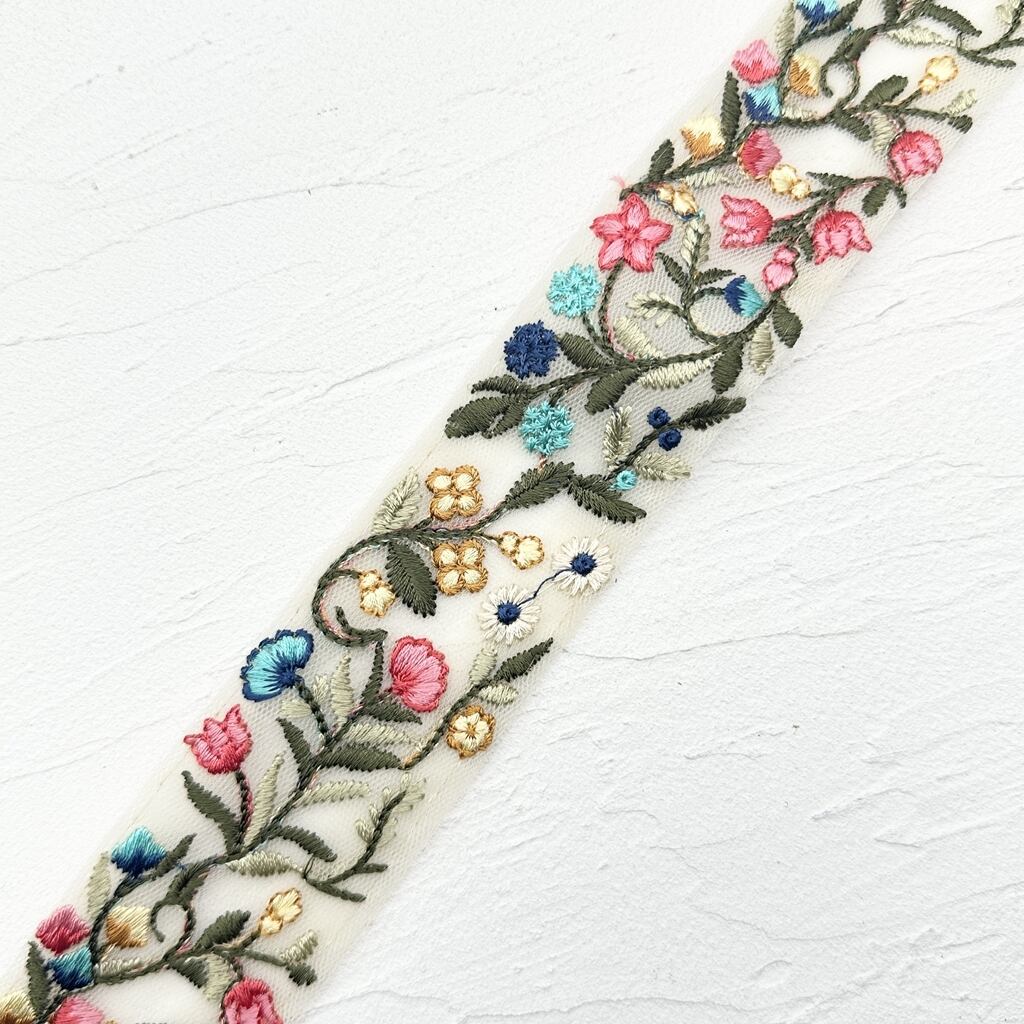 インド刺繍リボンは、細かい刺繍が施されていて色も鮮やかなリボンです。