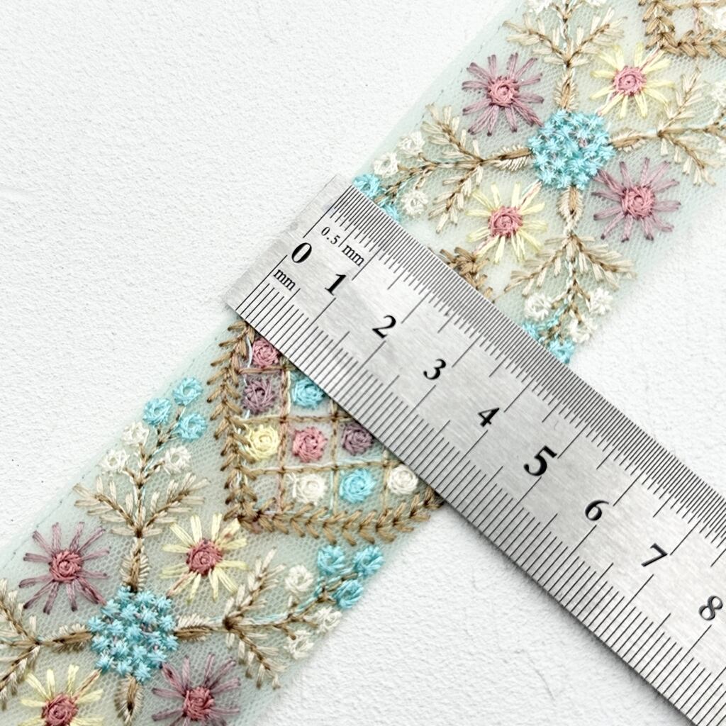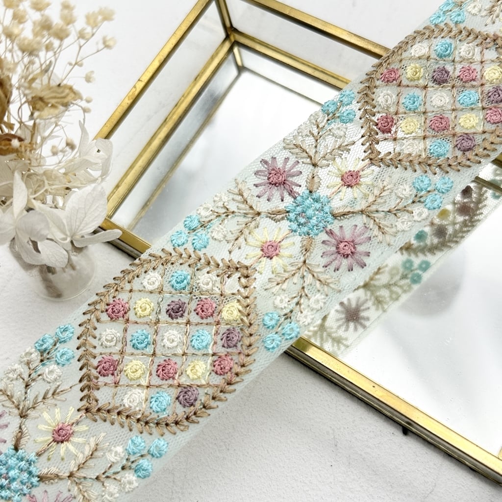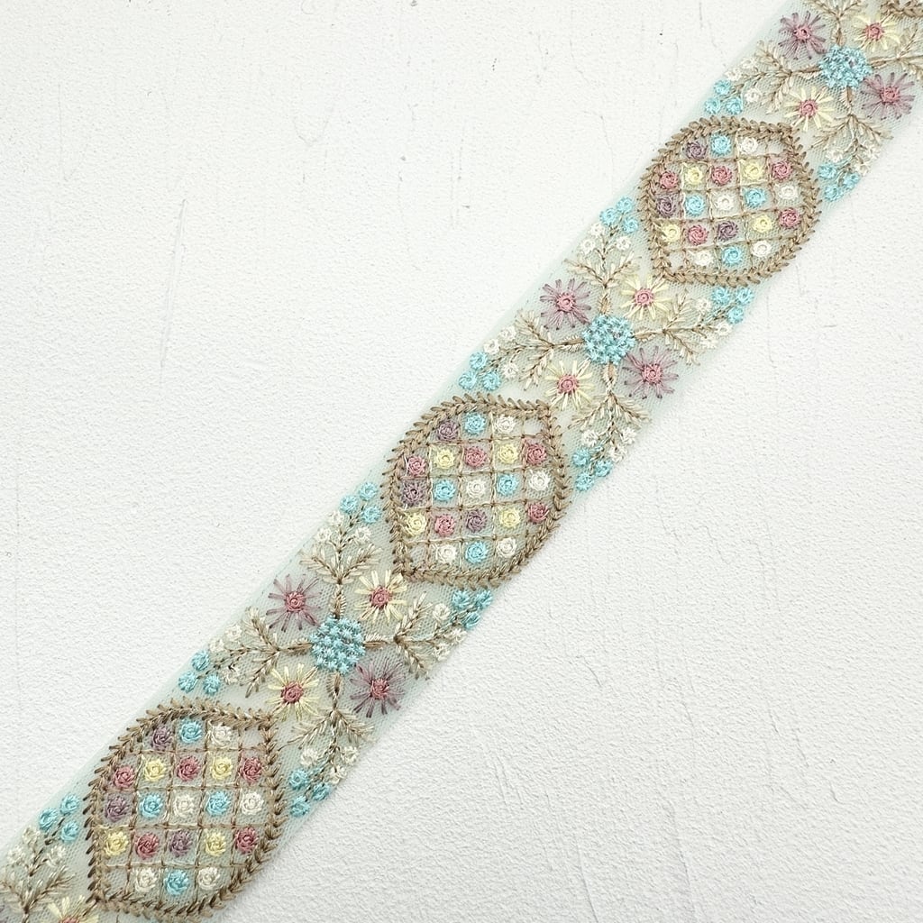インド刺繍リボンは、細かい刺繍が施されていて色も鮮やかなリボンです。