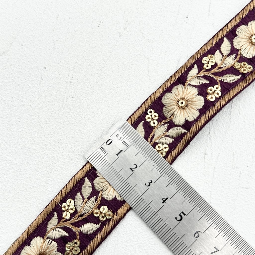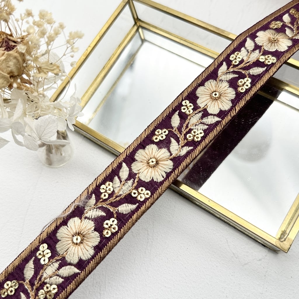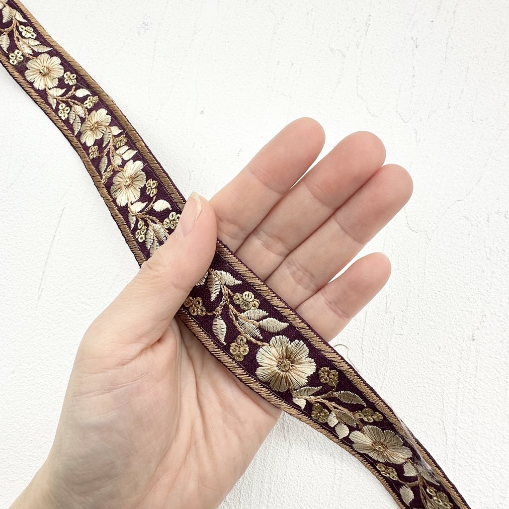 1ロール シックシンフォニー [ワインレッド]インド刺繍リボン 2746-1R