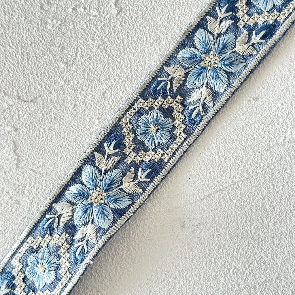 パステルフローラル[布デニムブルー]インド刺繍リボン 3143