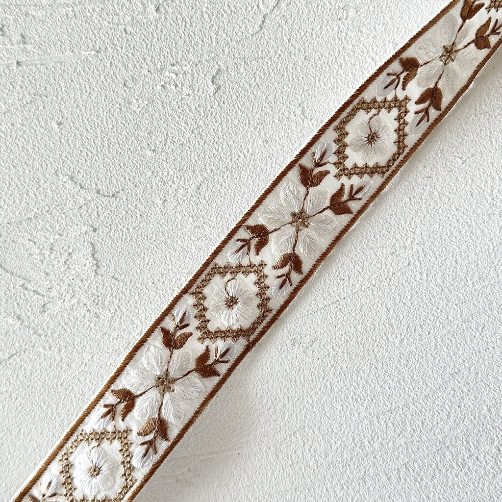 パステルフローラル [布ホワイト]インド刺繍リボン 3146
