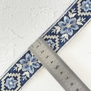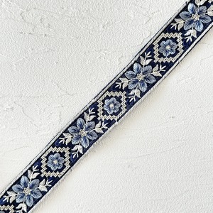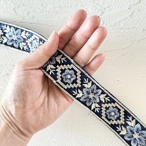 パステルフローラル [布ネイビー]インド刺繍リボン 3147