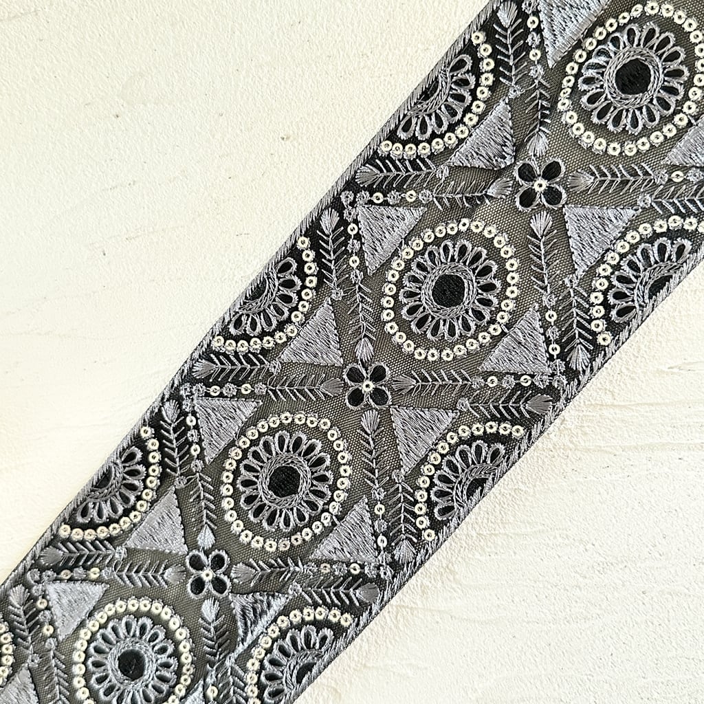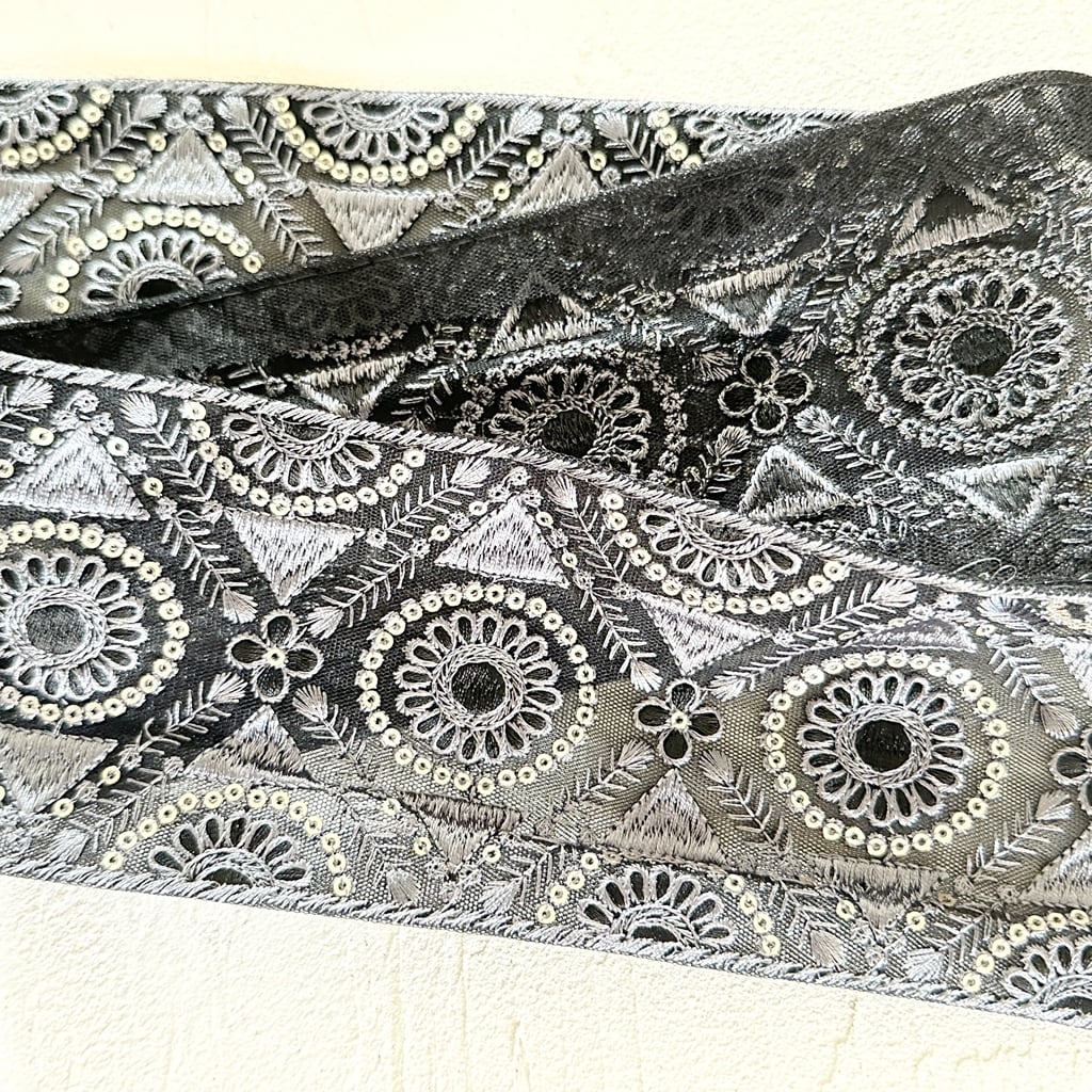 ダイヤモンドルージュ [ブラック]インド刺繍リボン 3150