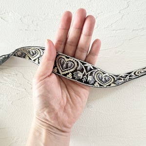 ハートスタイル [ブルーブラック]インド刺繍リボン 3127