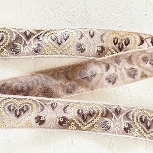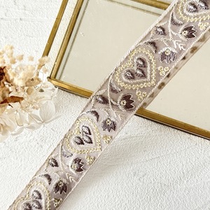 ハートスタイル [くすみパープル]インド刺繍リボン 3129