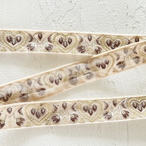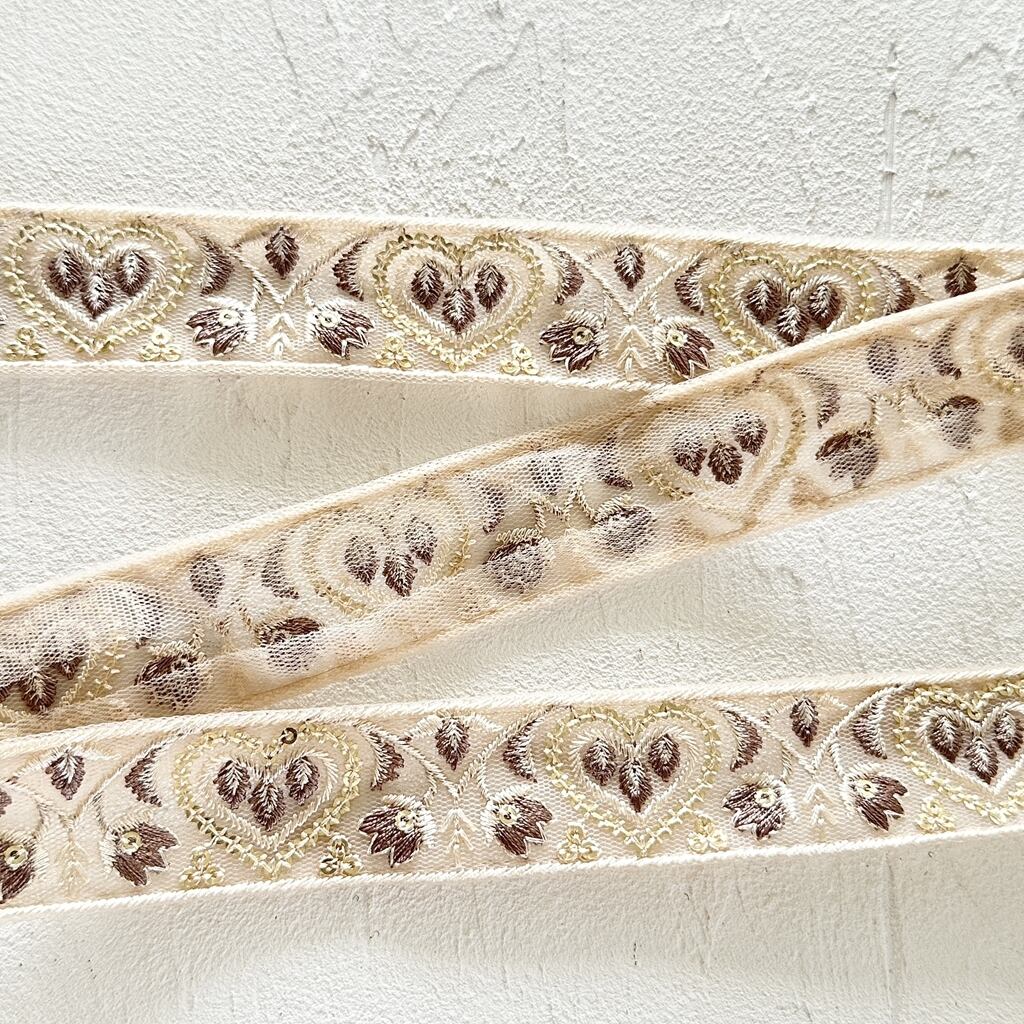 ハートスタイル [ベージュ]インド刺繍リボン 3130
