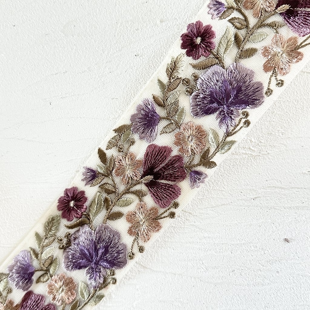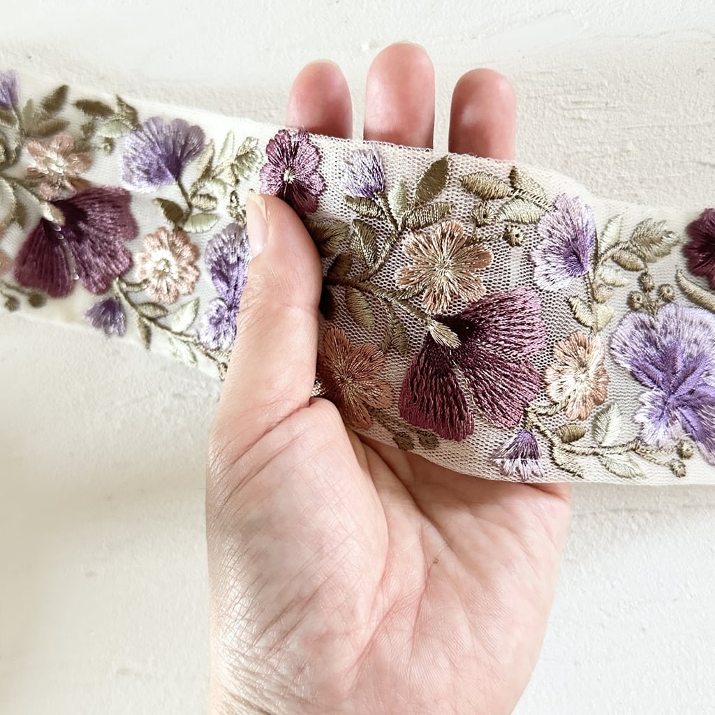 グレイス [パープルクリーム]インド刺繍リボン 3168