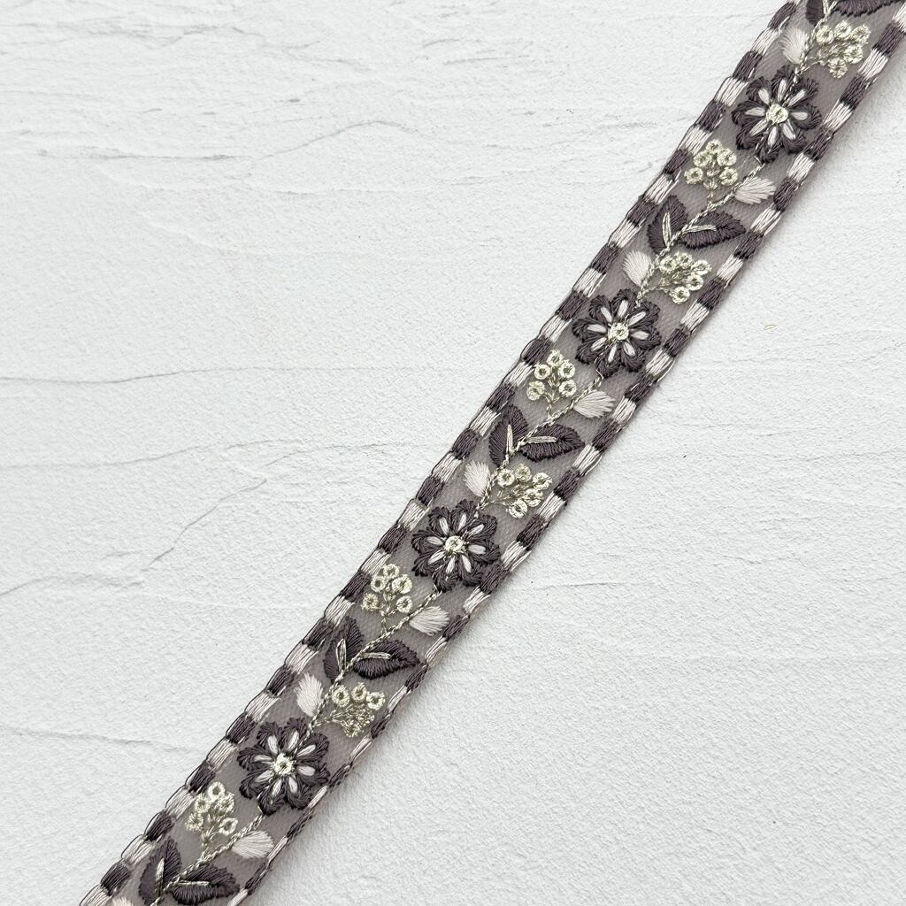 1ロール プリズムデザイン [くすみパープル]インド刺繍リボン 2287-1R