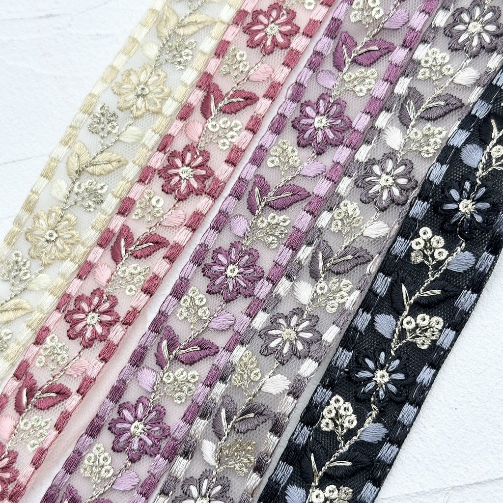 インド刺繍リボンは、細かい刺繍が施されていて色も鮮やかなリボンです。