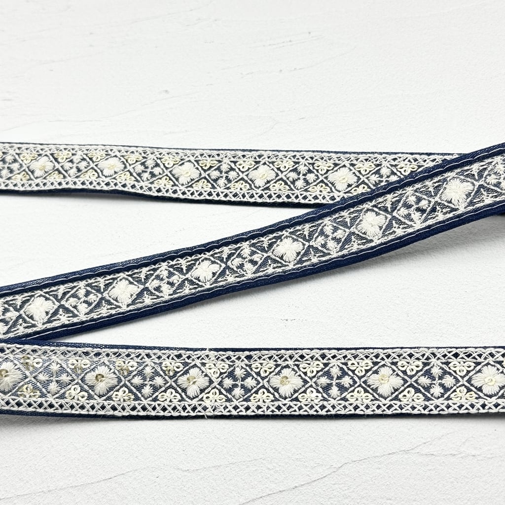 1ロール ホワイトドリームNEW [ネイビー] インド刺繍リボン 2593