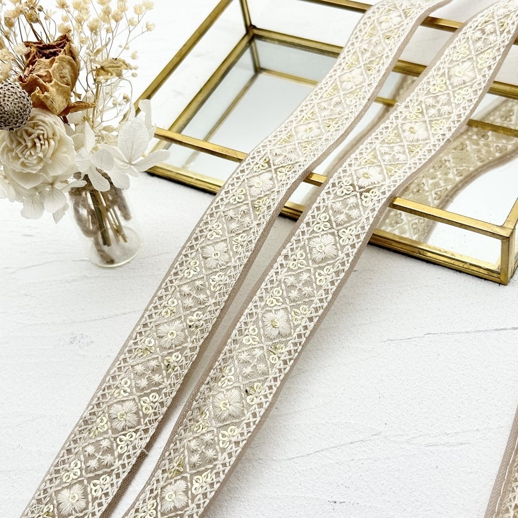 1ロール ホワイトドリームNEW [ベージュ]インド刺繍リボン 2596-1R