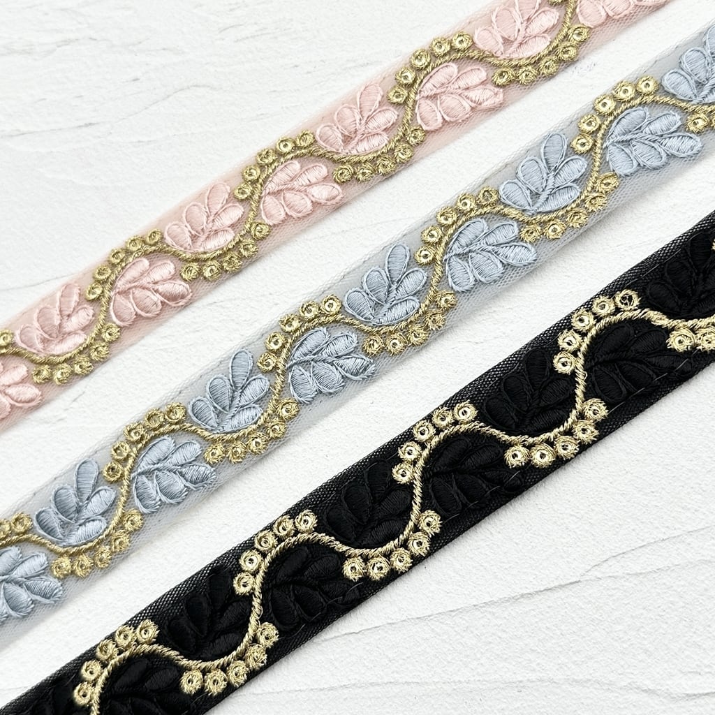 インド刺繍リボンは、細かい刺繍が施されていて色も鮮やかなリボンです。