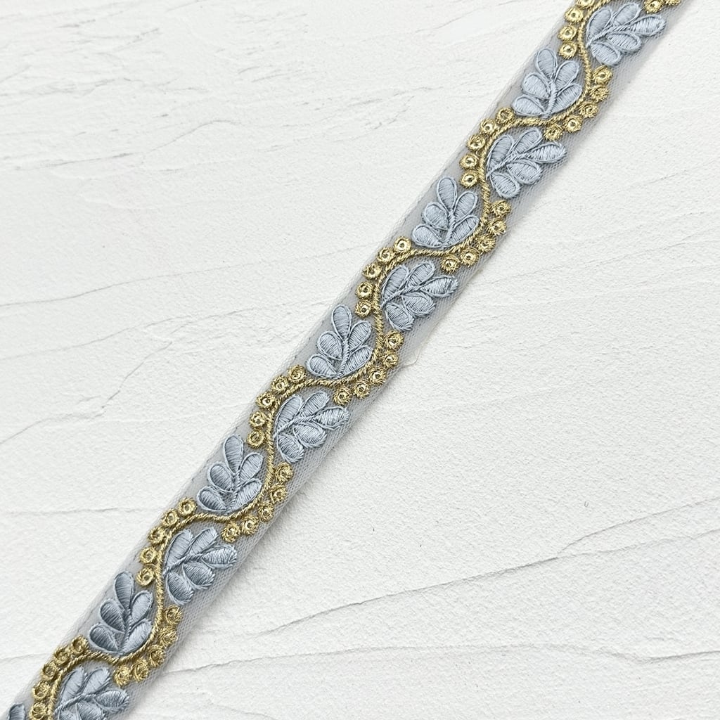 1ロール ドリーム [サックス]インド刺繍リボン 2330-1R