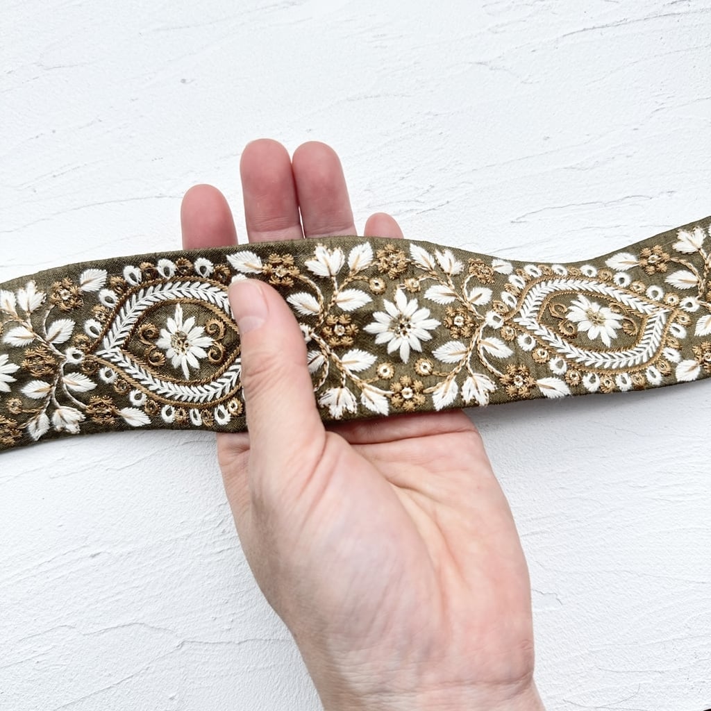 1ロール [カーキ]インド刺繍リボン 2921-1R
