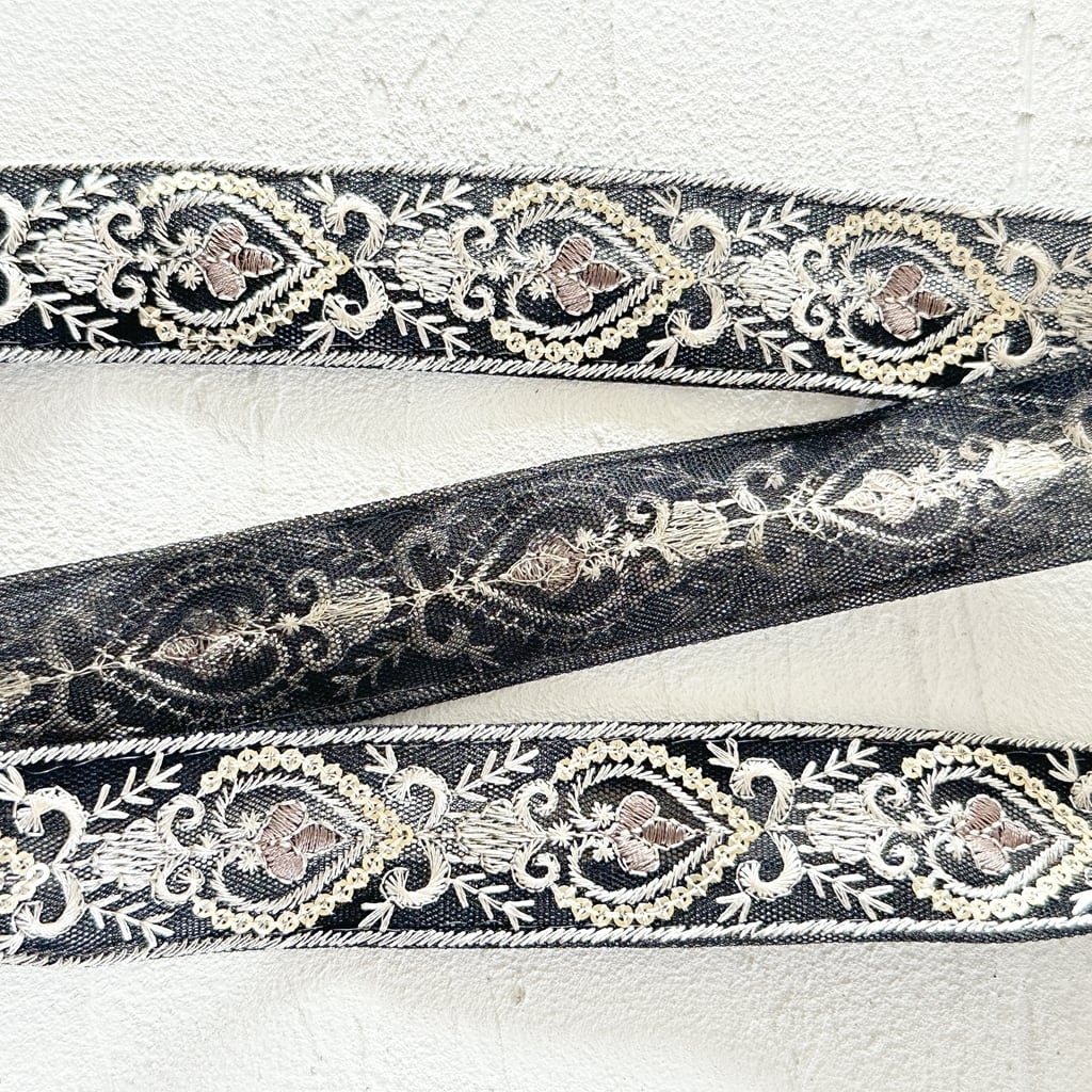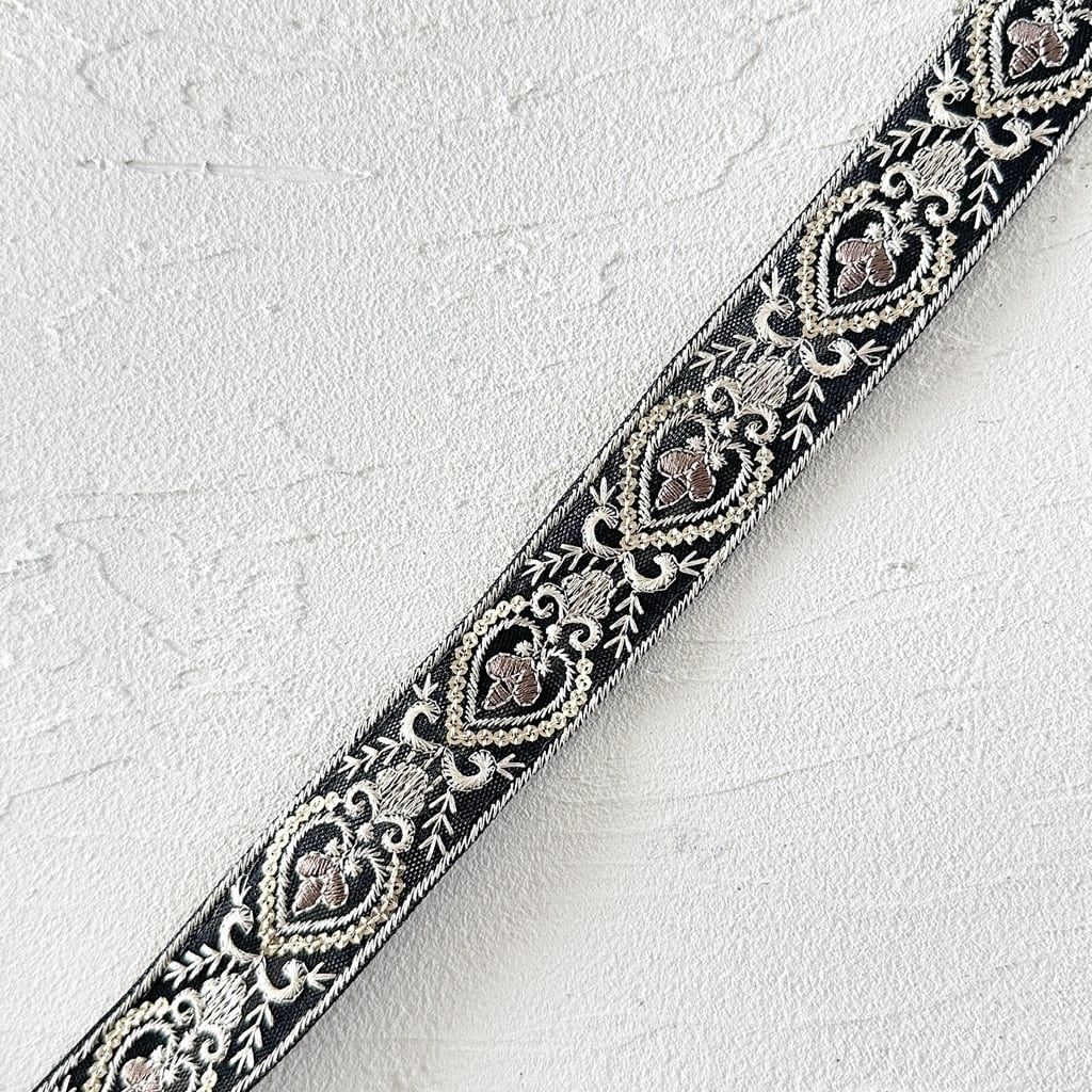 1ロール 新色入荷 プレシャスハート [ブラウンブラック]インド刺繍リボン 3117-1R