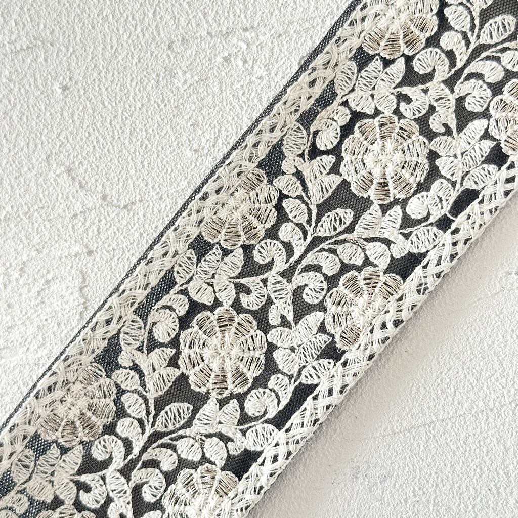 ミルキーフィズ [ブラック]インド刺繍リボン 3108