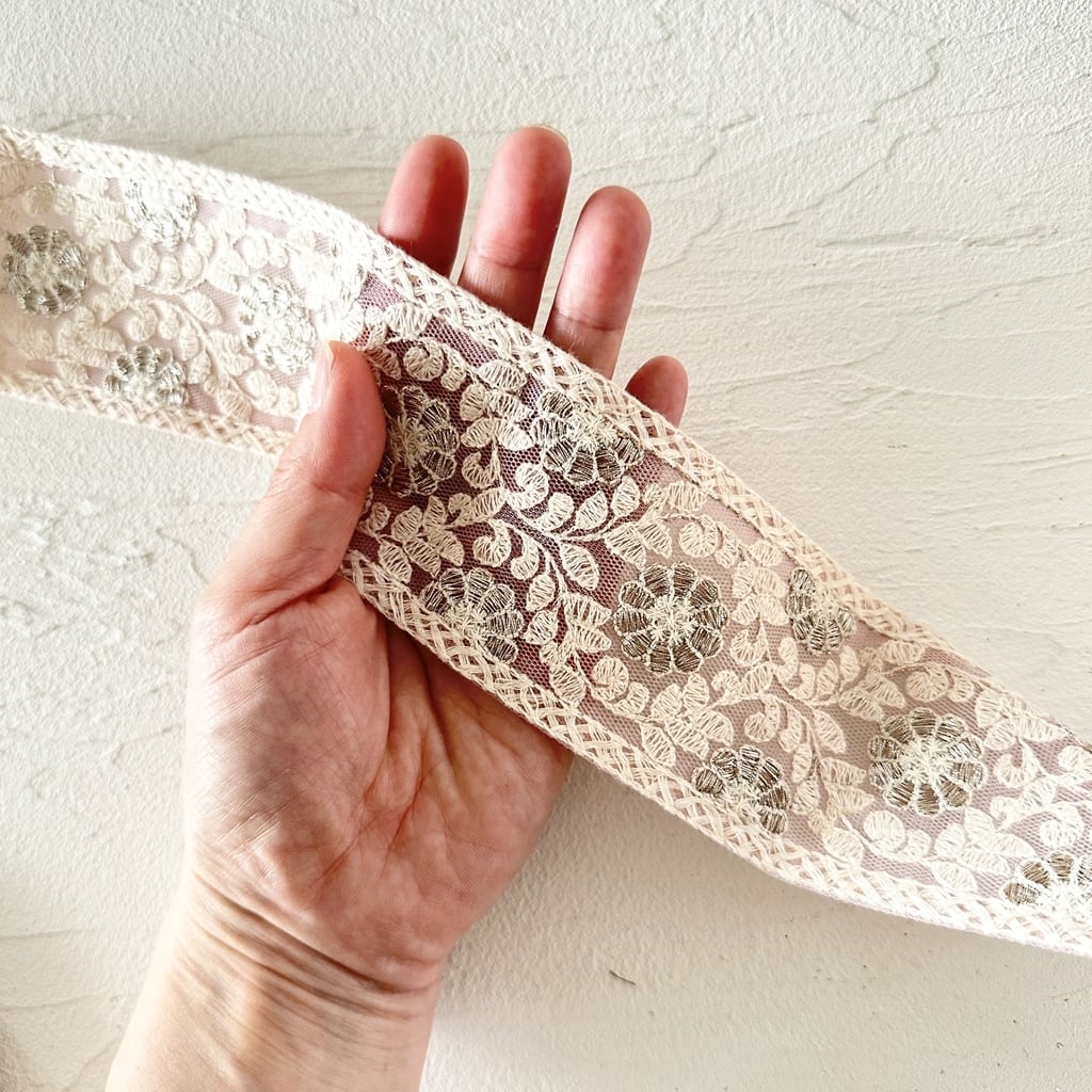 インド刺繍リボンは、細かい刺繍が施されていて色も鮮やかなリボンです。