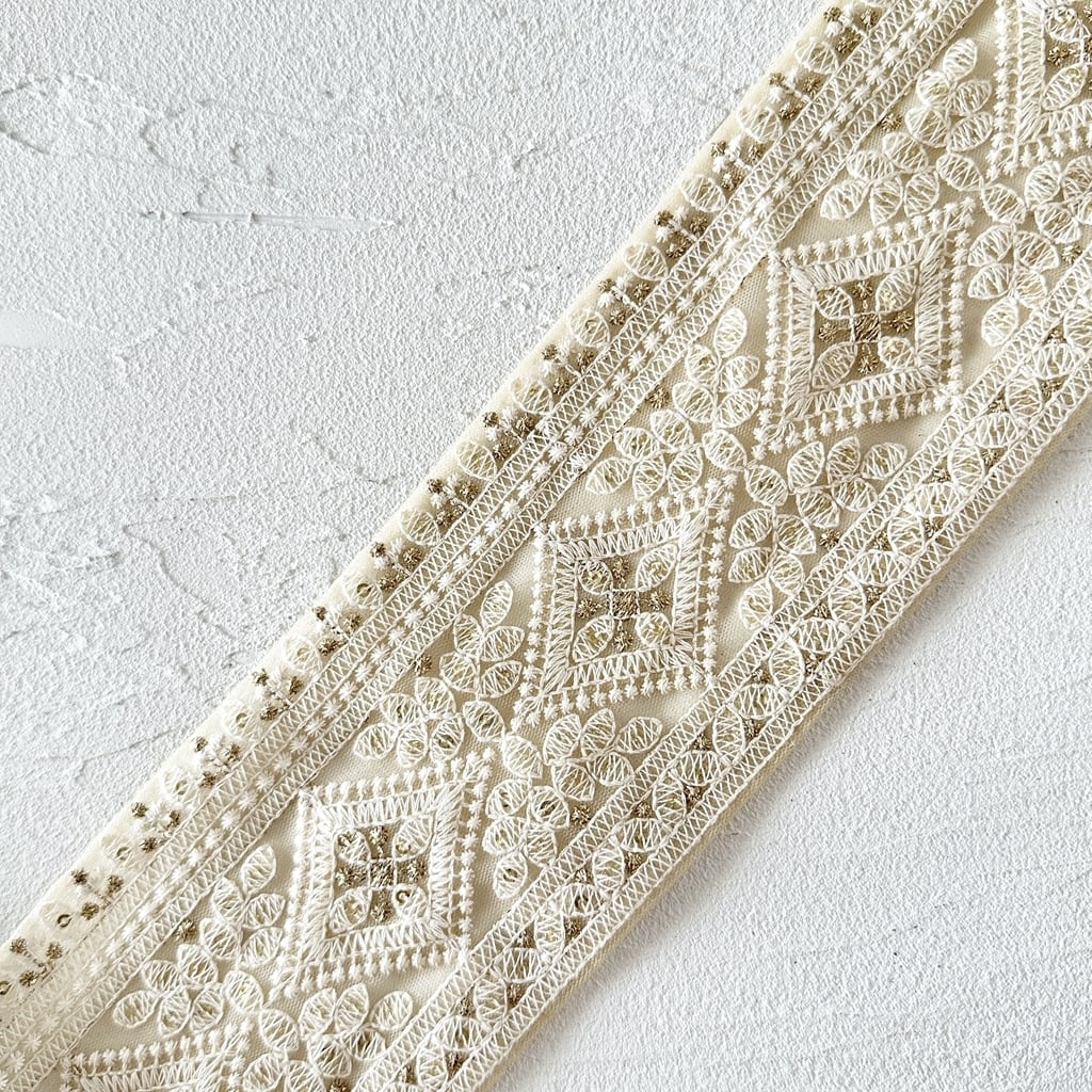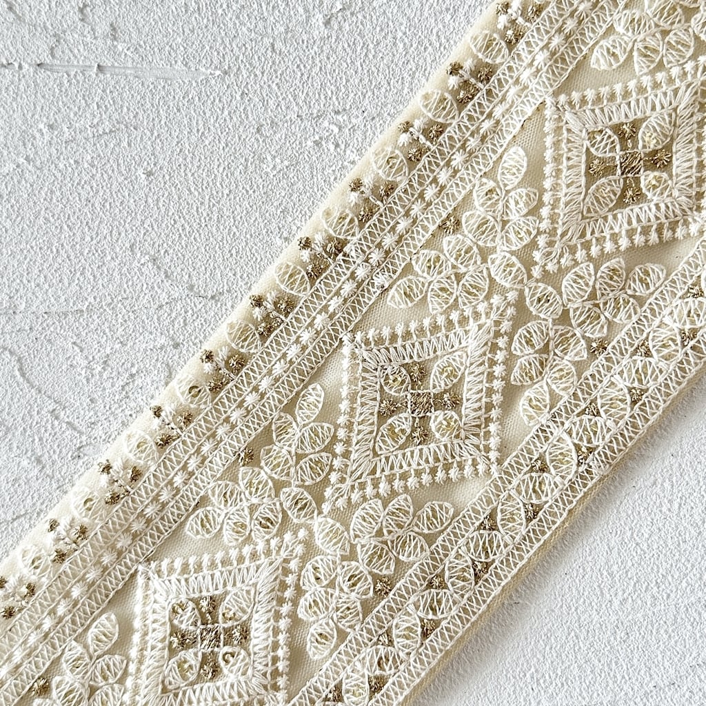 新色入荷 ダイヤクロス [クリーム]インド刺繍リボン 3138