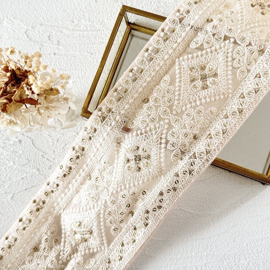 新色入荷 ダイヤクロス [ピーチ]インド刺繍リボン 3139
