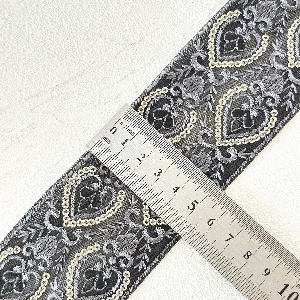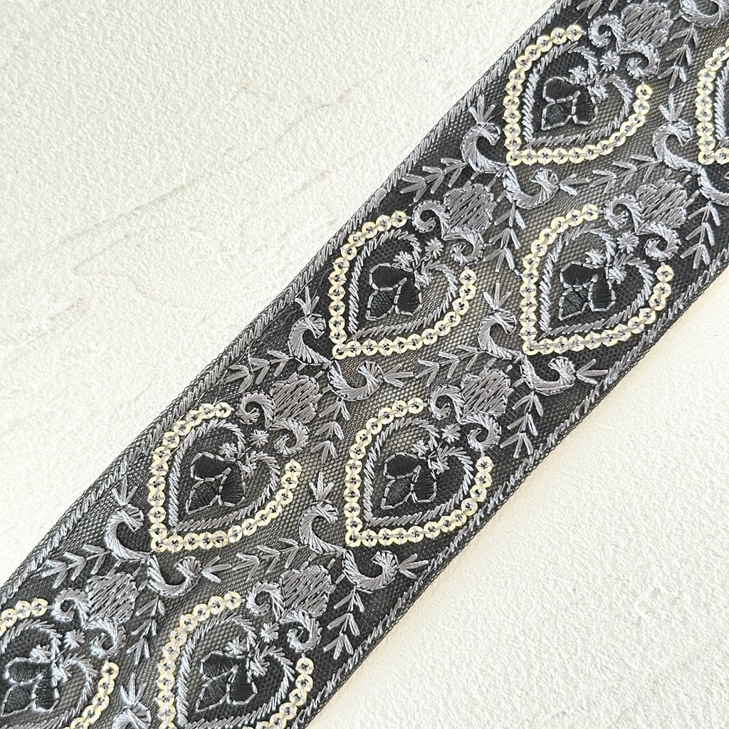 プレシャスハートwide [ブラック] インド刺繍リボン 3223