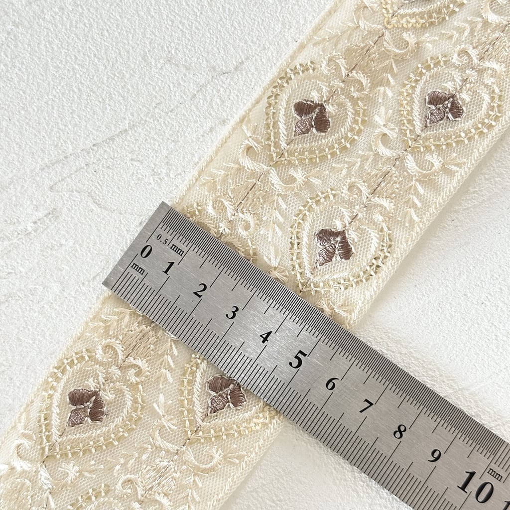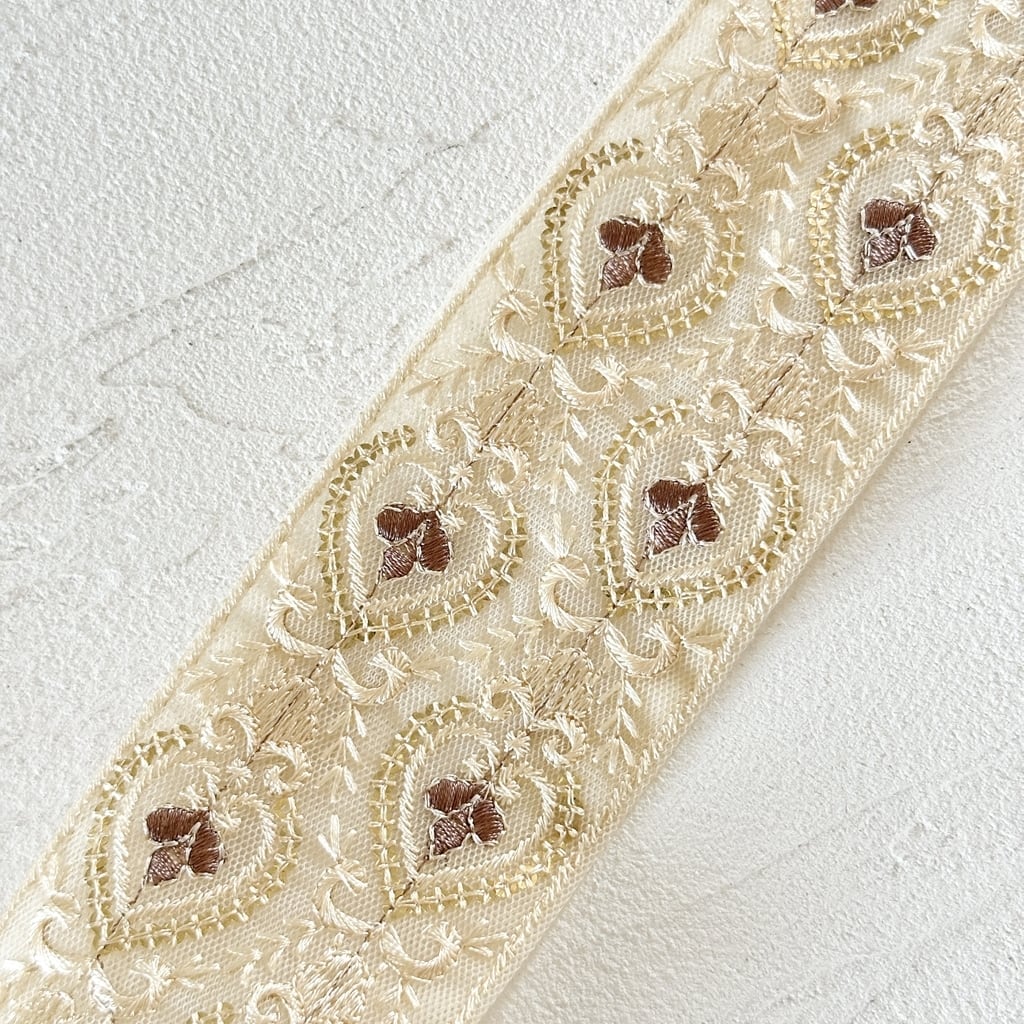 プレシャスハートwide [ブラウンベージュ] インド刺繍リボン 3225