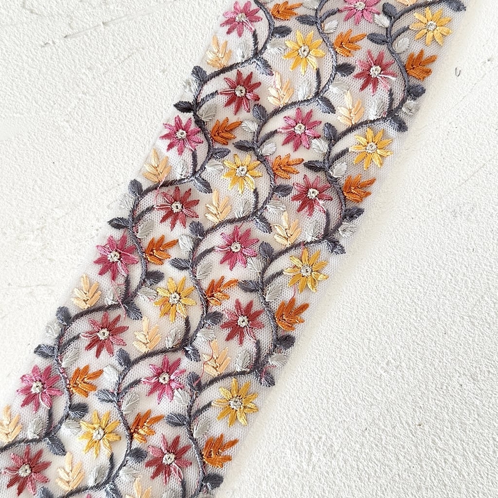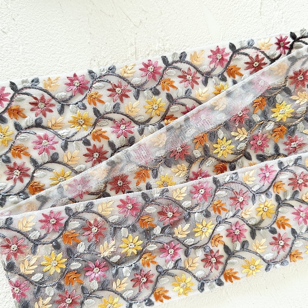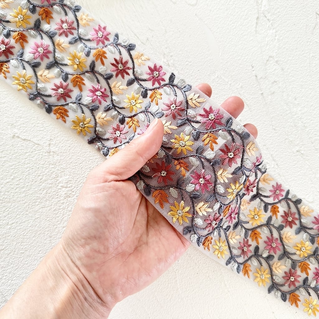 インド刺繍リボンは、細かい刺繍が施されていて色も鮮やかなリボンです。