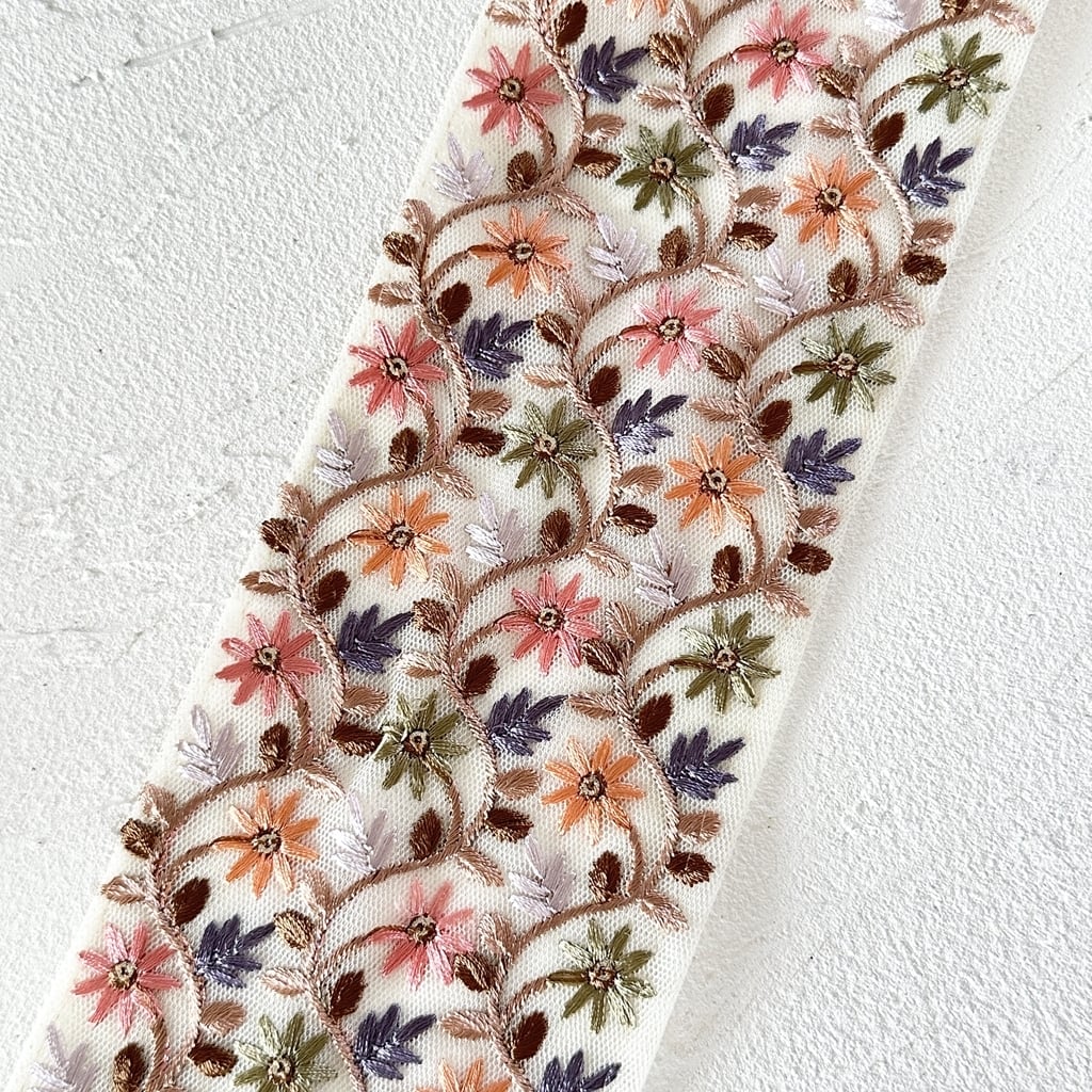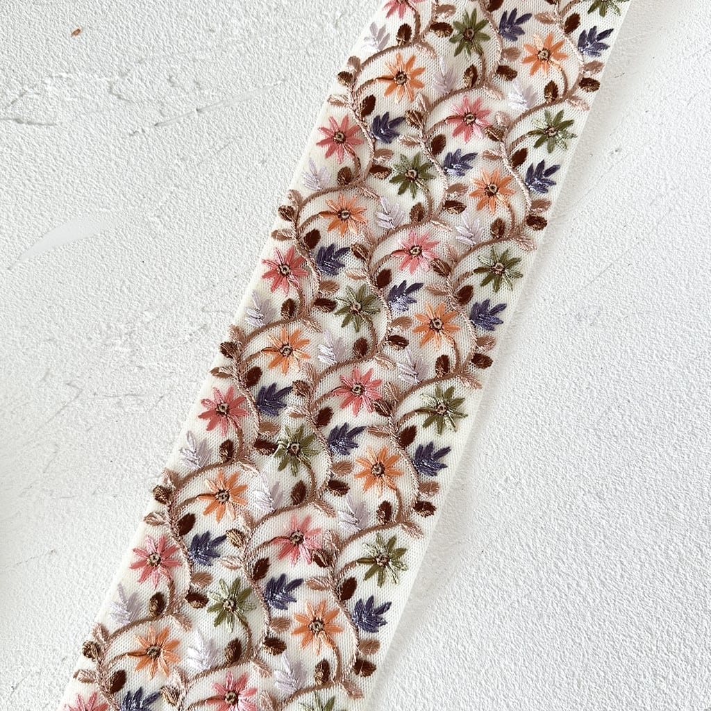 ワイド [オレンジアイボリー] インド刺繍リボン 3326