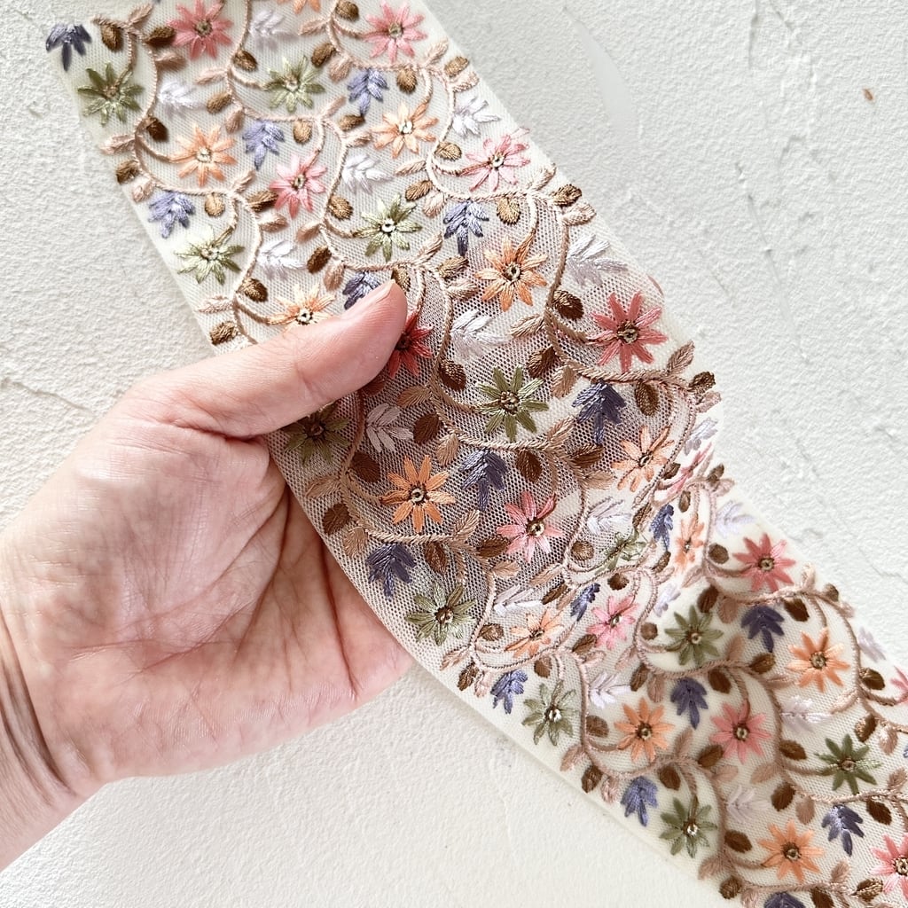 インド刺繍リボンは、細かい刺繍が施されていて色も鮮やかなリボンです。