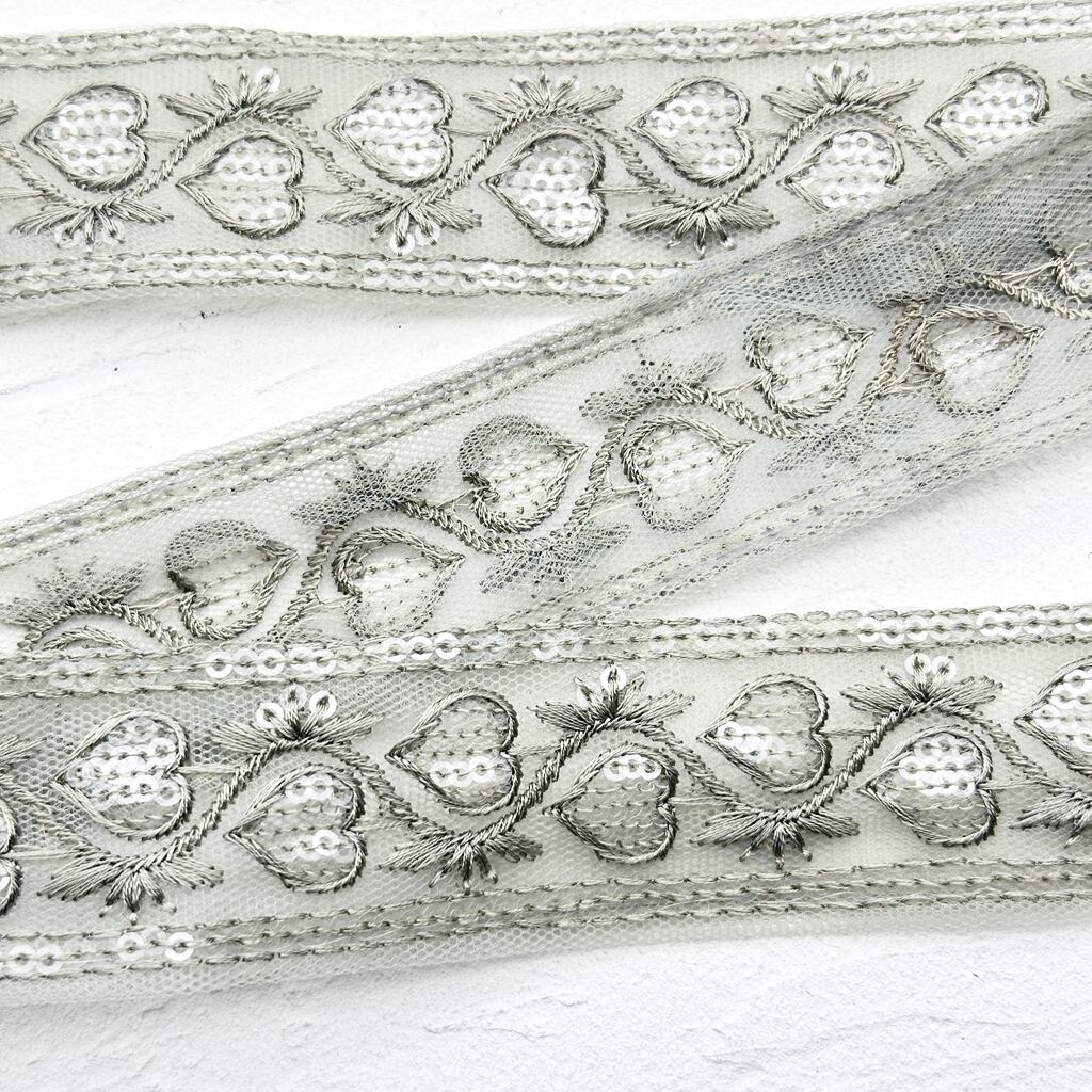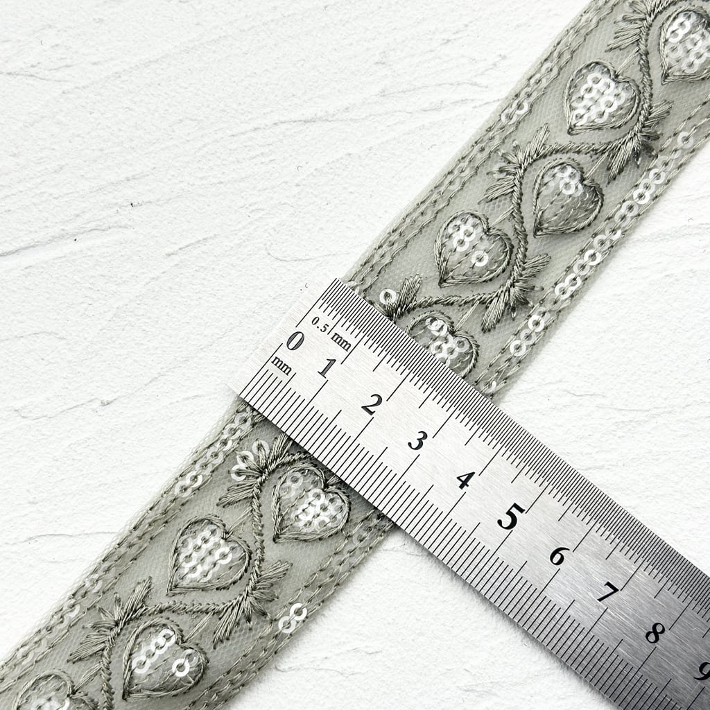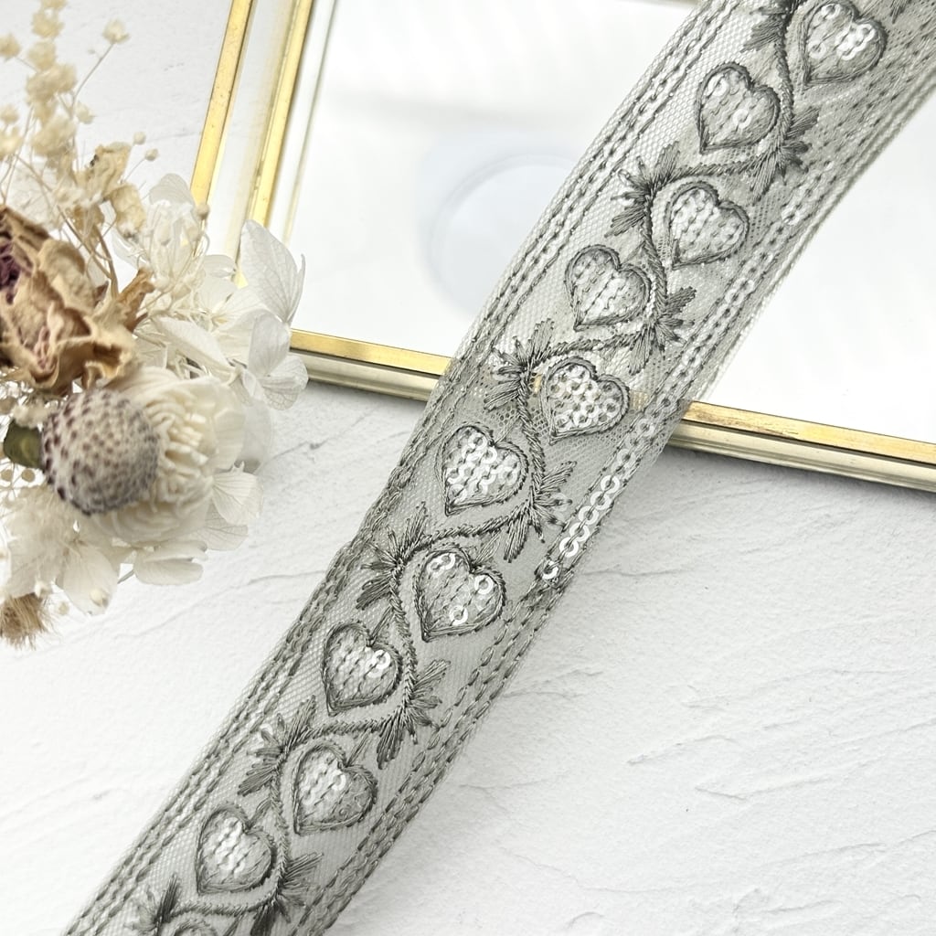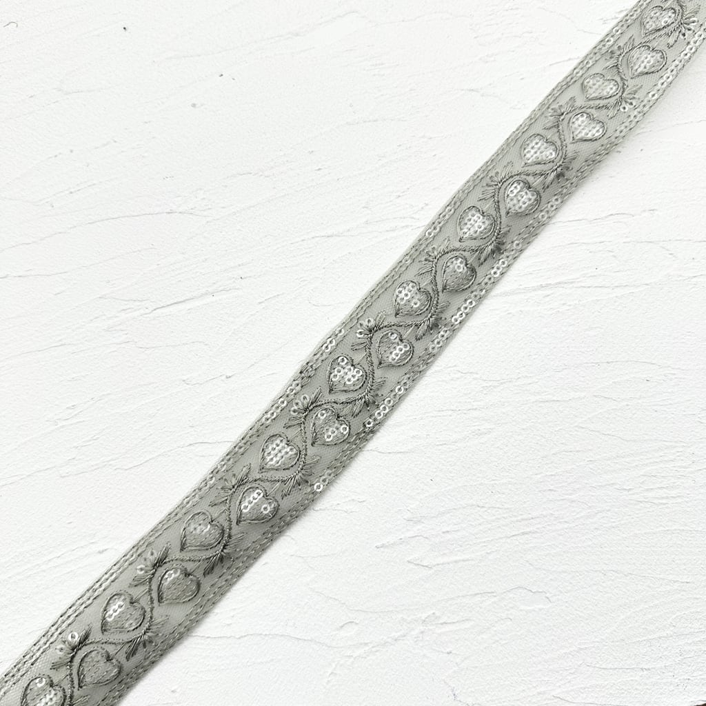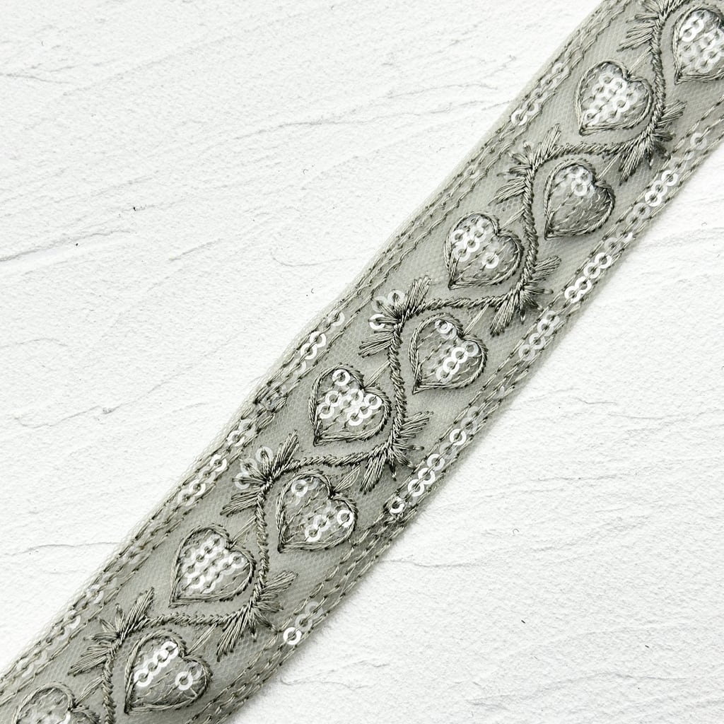 1ロール キュートハート [グレー]インド刺繍リボン 2884-1R