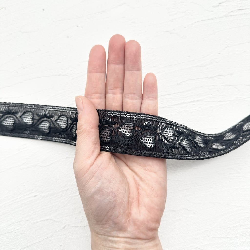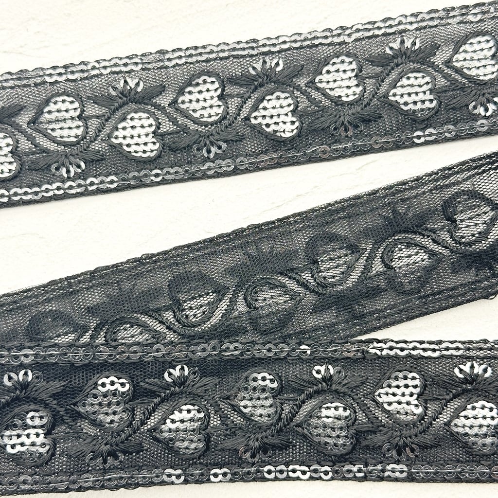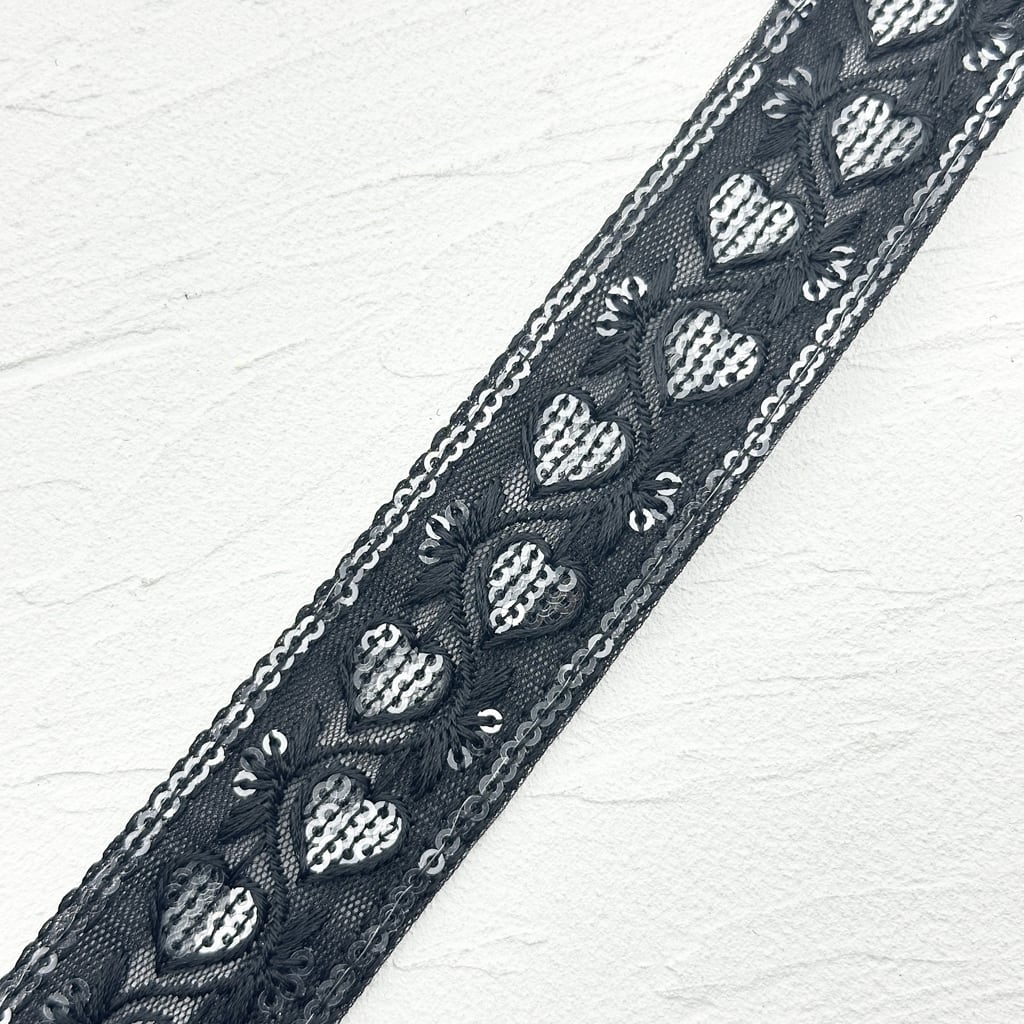 1ロール キュートハート [ブラック]インド刺繍リボン 2883-1R
