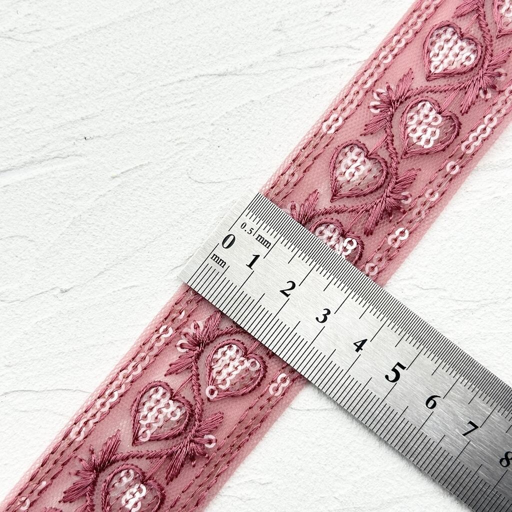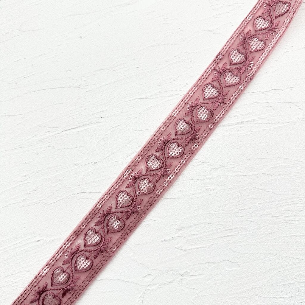 1ロール キュートハート [レッド]インド刺繍リボン 2890-1R