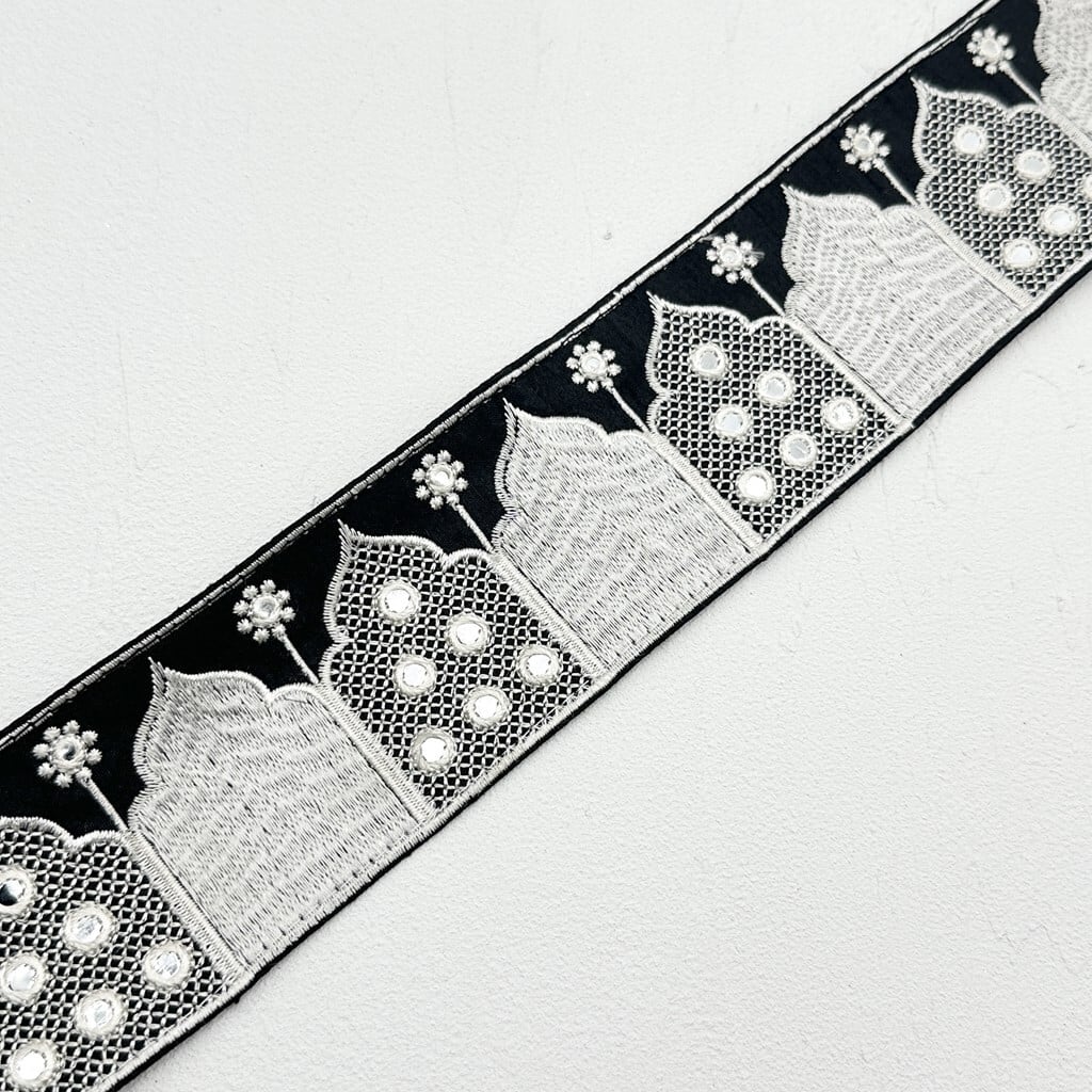 1ロール シティライト [シルバーブラック]インド刺繍リボン 1468-1R