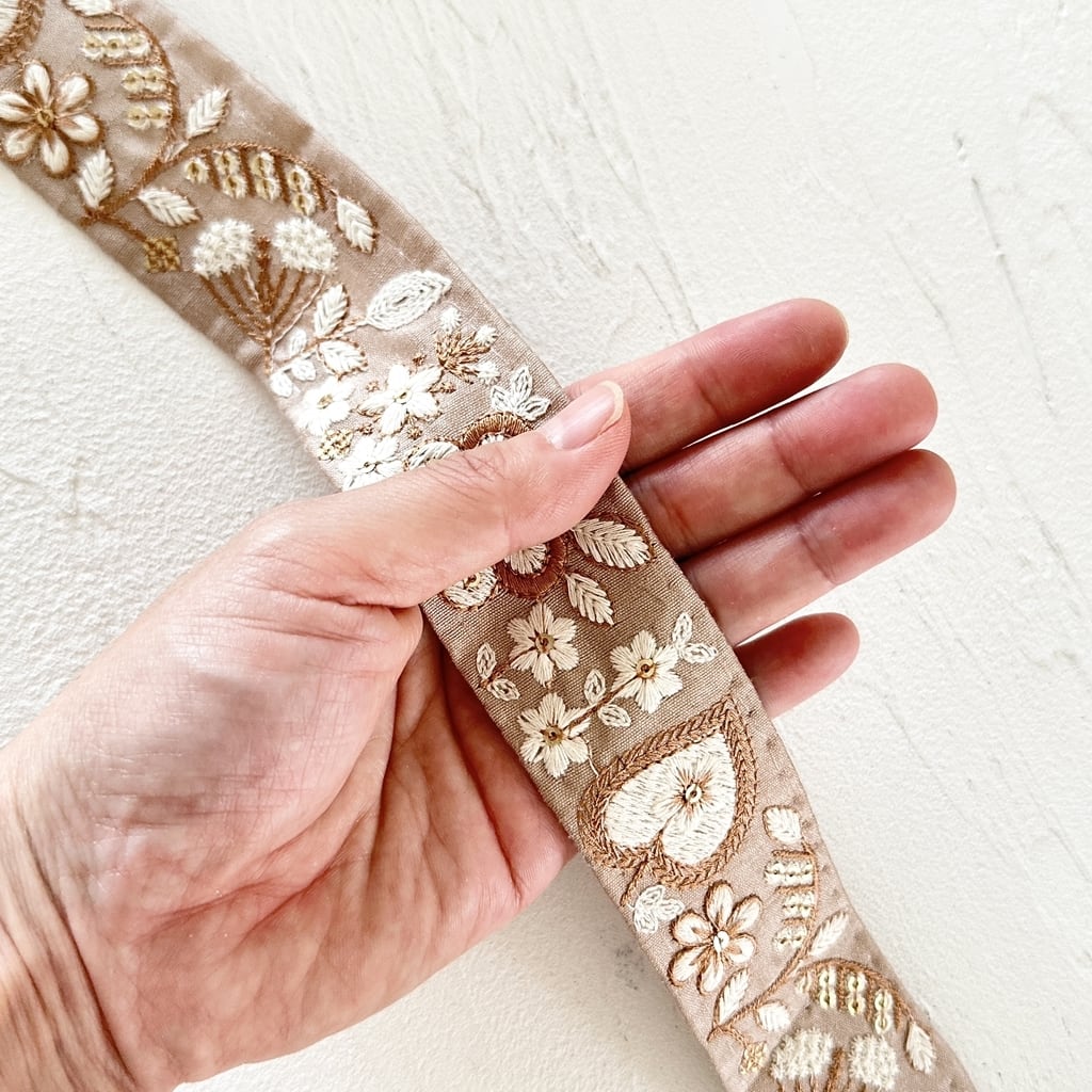 インド刺繍リボンは、細かい刺繍が施されていて色も鮮やかなリボンです。