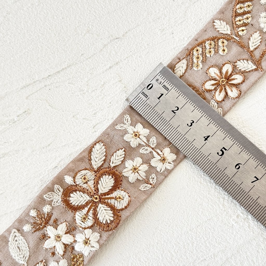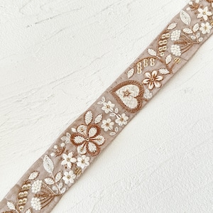 1ロール ハート [ベージュ] インド刺繍リボン 3231-1R