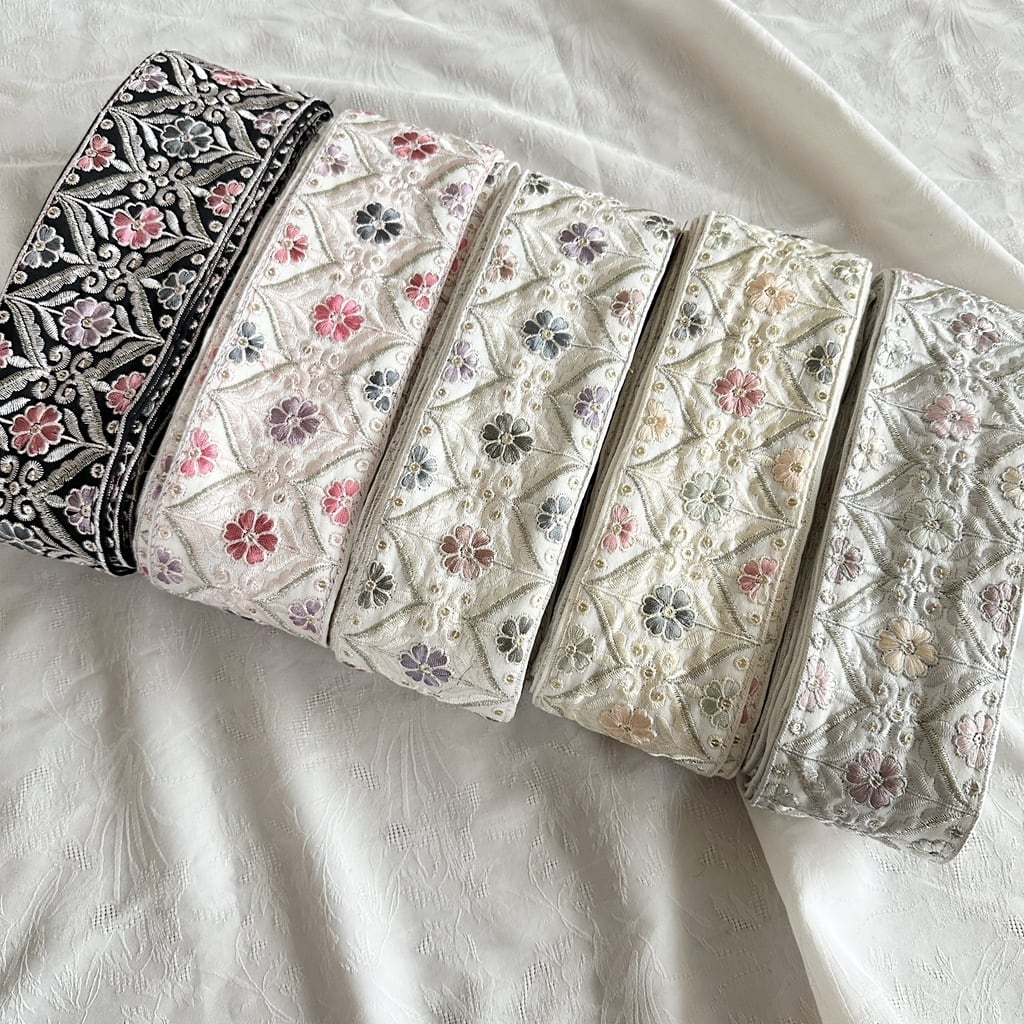インド刺繍リボンは、細かい刺繍が施されていて色も鮮やかなリボンです。