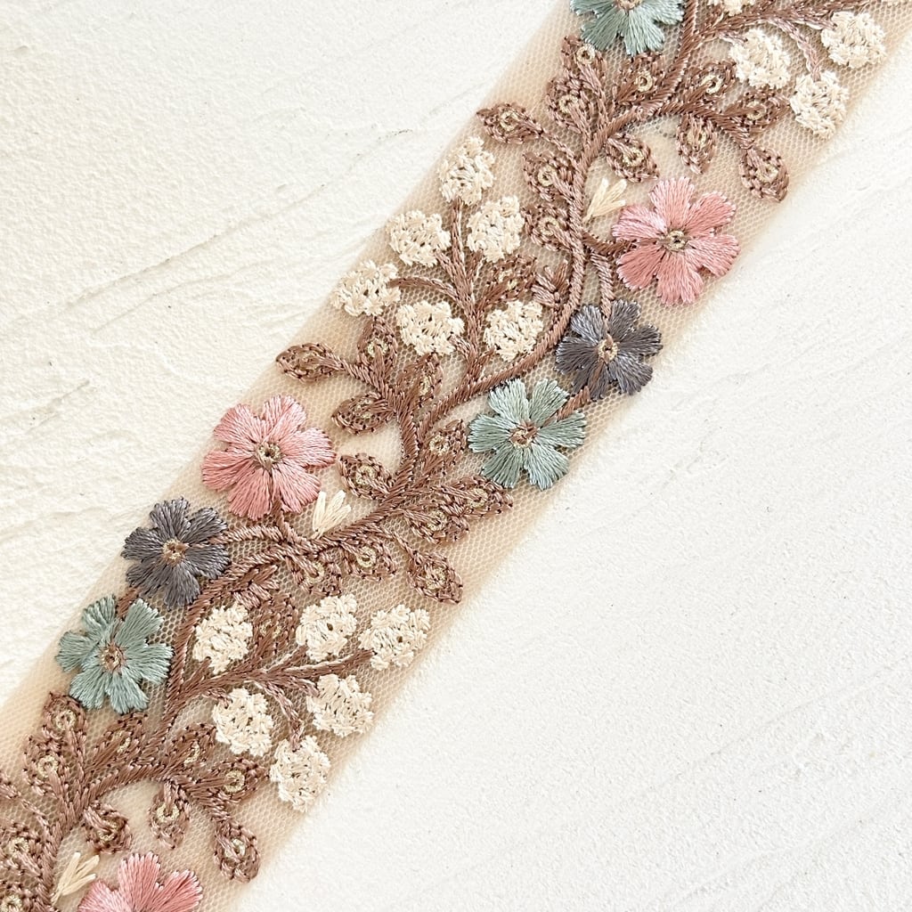 インド刺繍リボンは、細かい刺繍が施されていて色も鮮やかなリボンです。