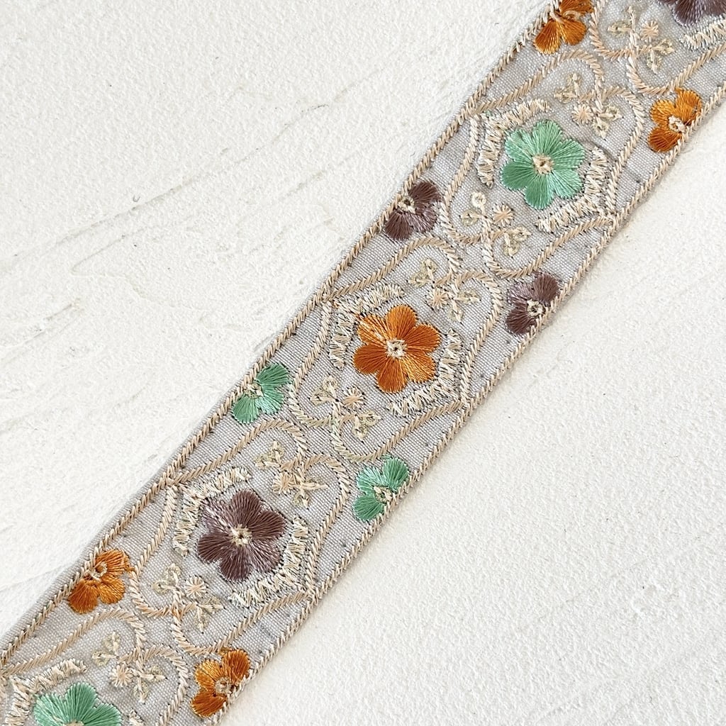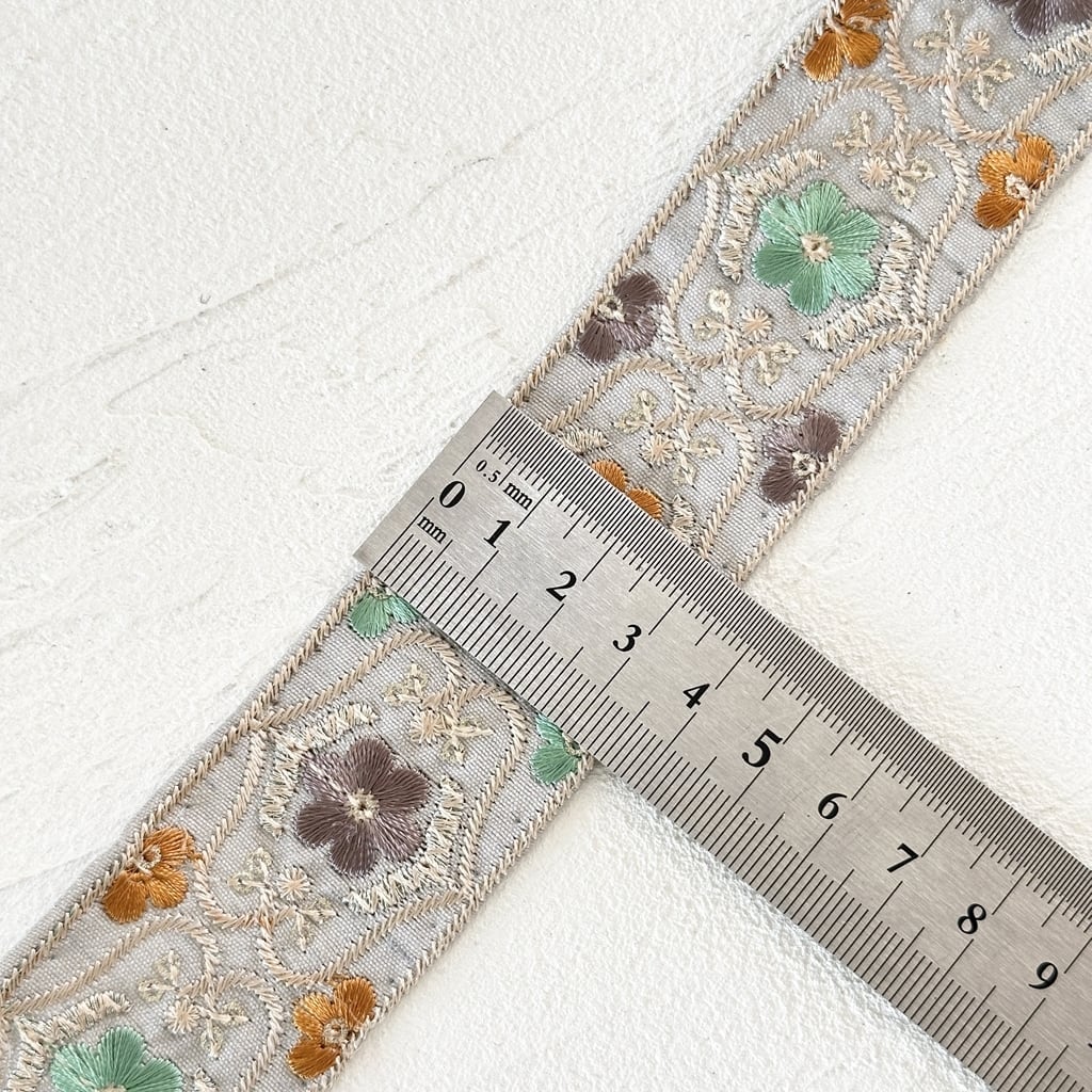 フローライト [くすみブルー] インド刺繍リボン 3254