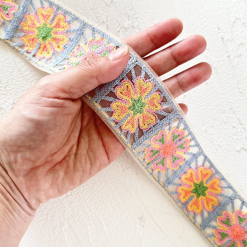 インド刺繍リボンは、細かい刺繍が施されていて色も鮮やかなリボンです。