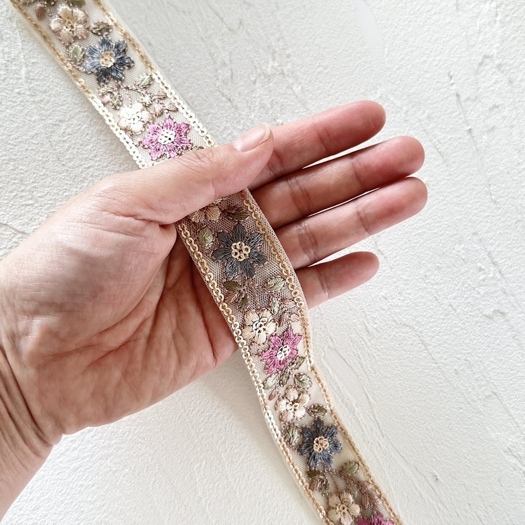 インド刺繍リボンは、細かい刺繍が施されていて色も鮮やかなリボンです。