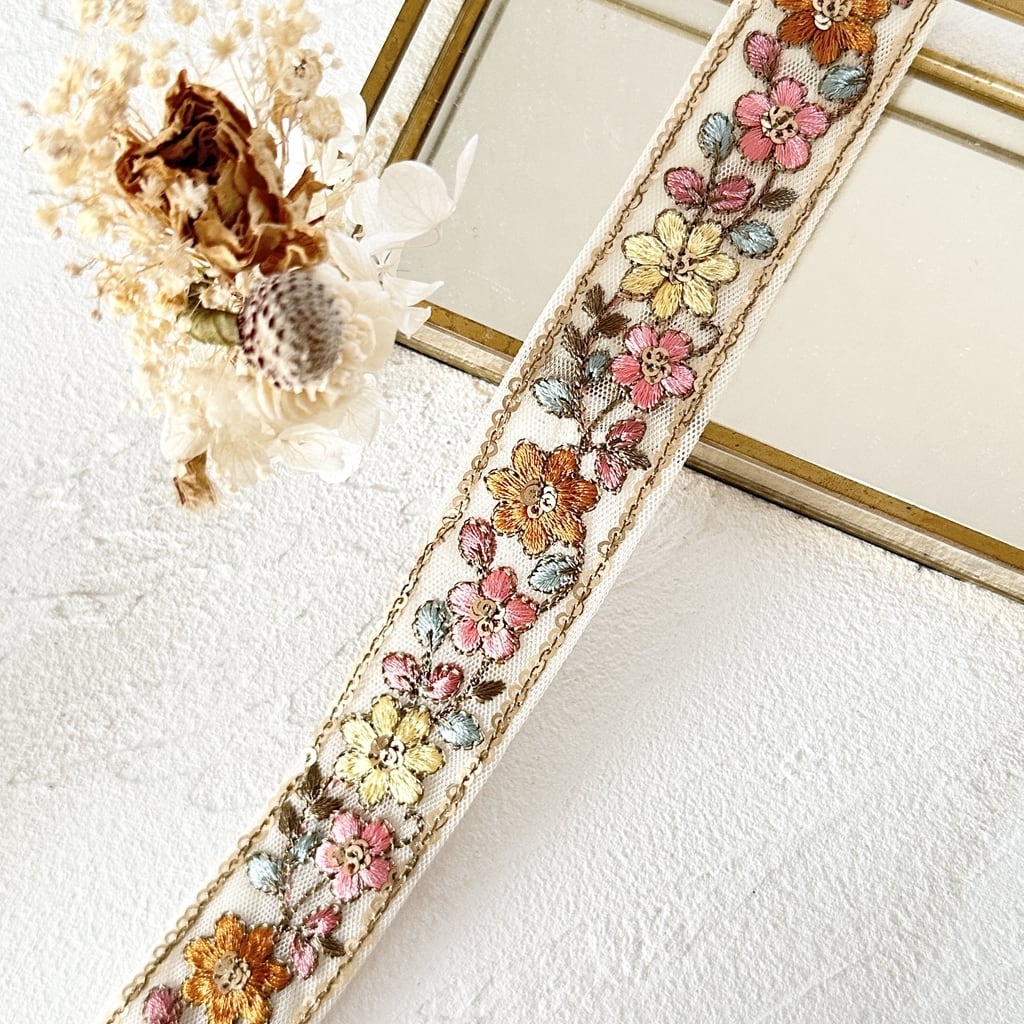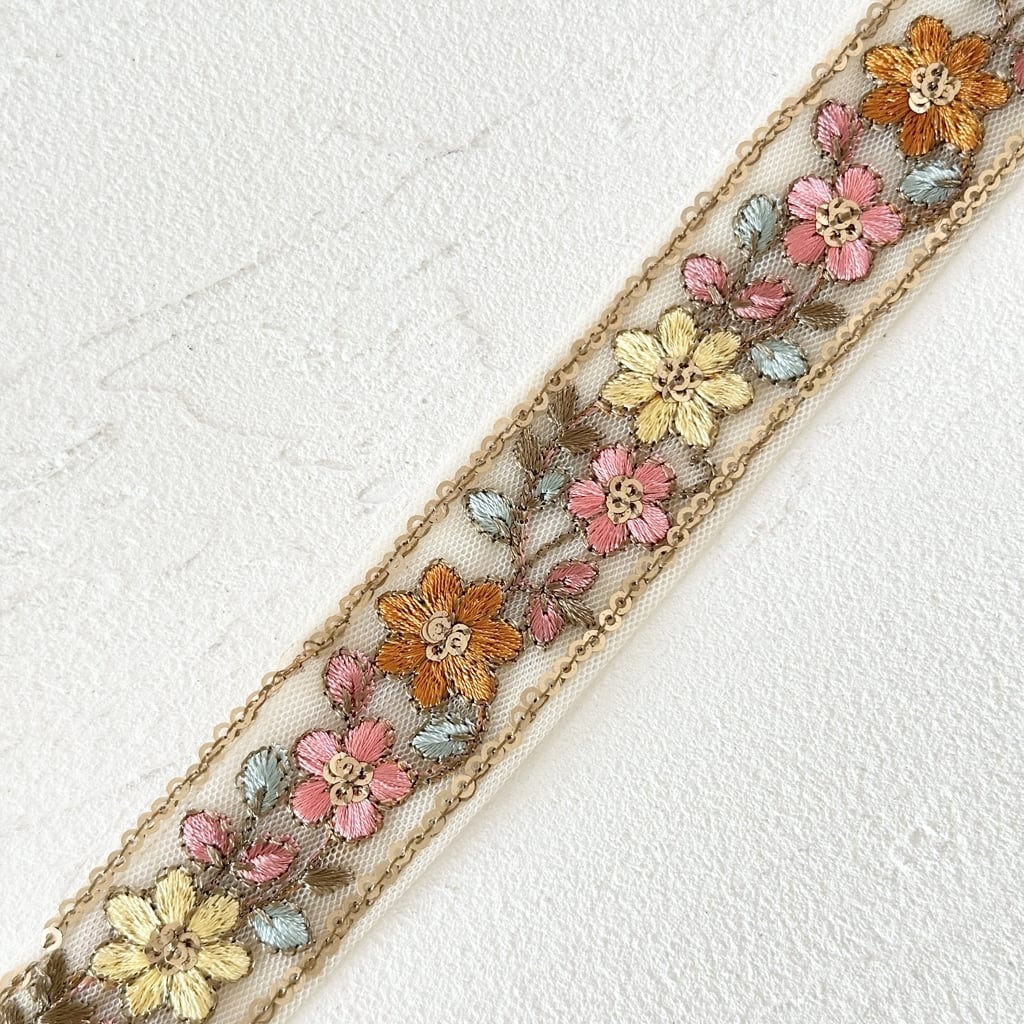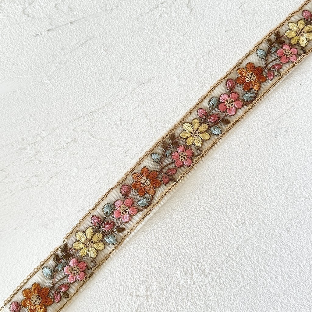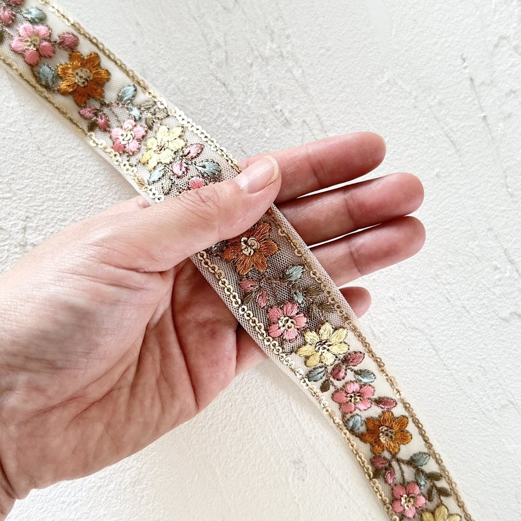 インド刺繍リボンは、細かい刺繍が施されていて色も鮮やかなリボンです。