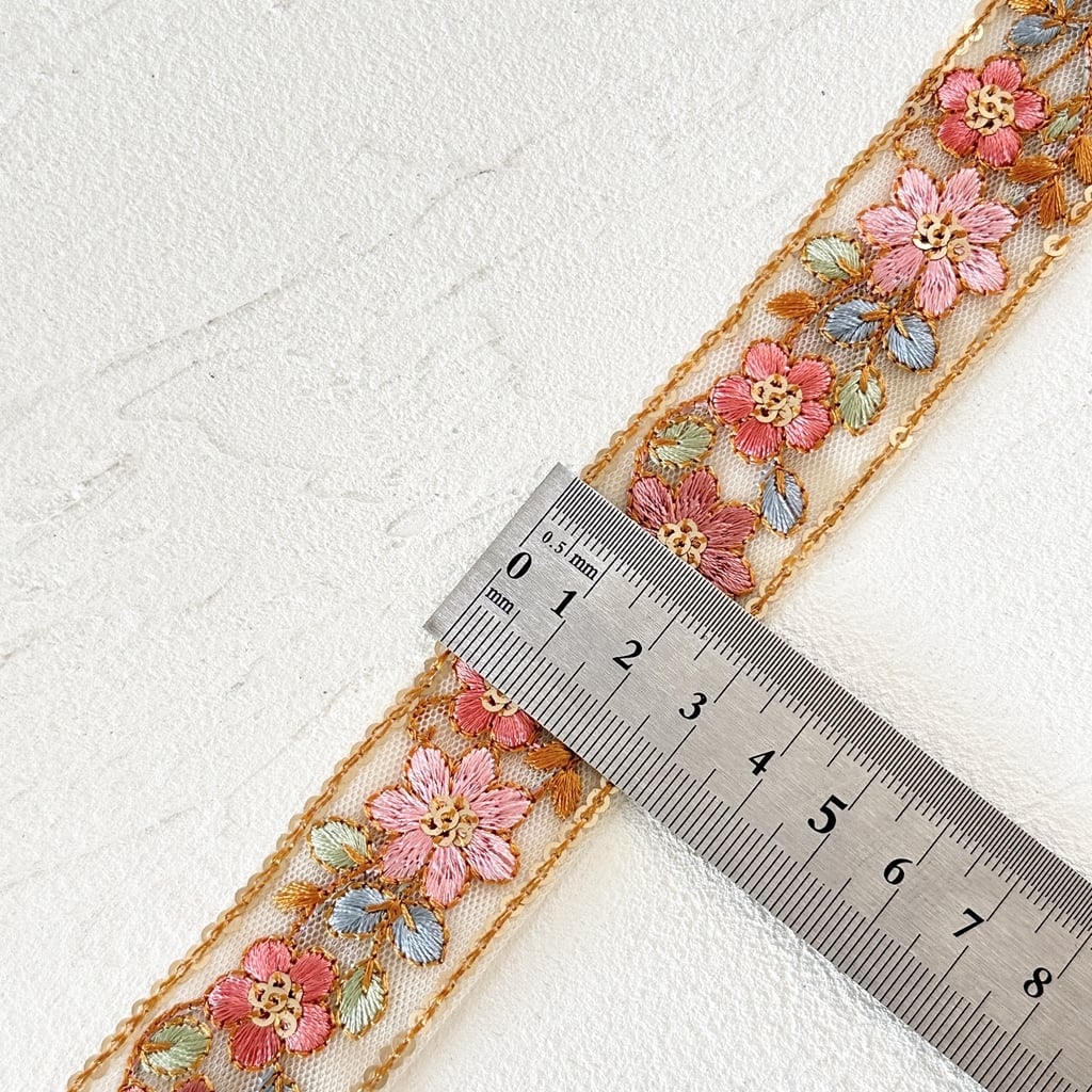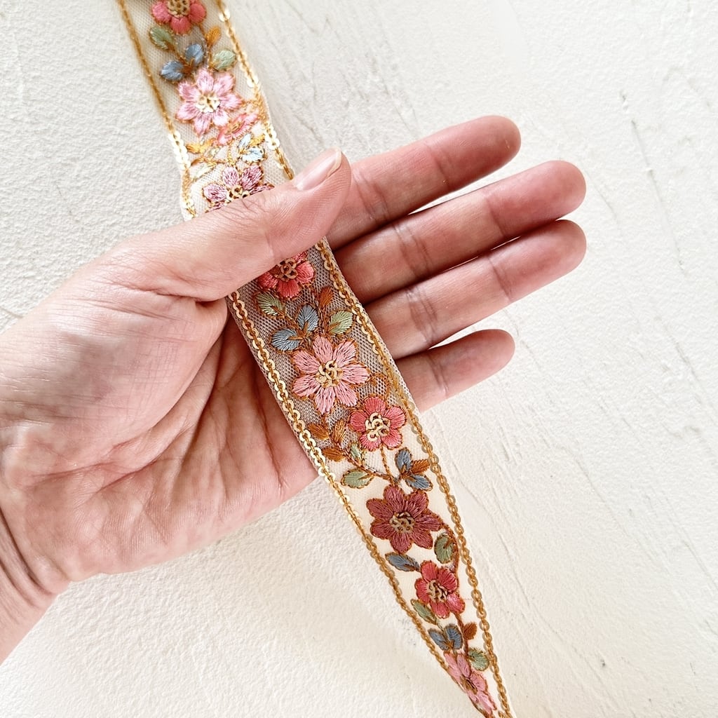 インド刺繍リボンは、細かい刺繍が施されていて色も鮮やかなリボンです。