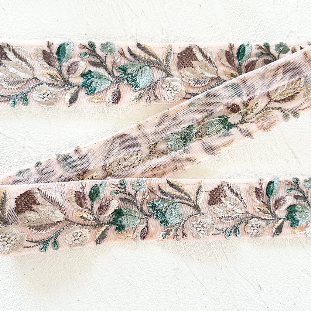チューリップ [ターコイズピンク]インド刺繍リボン 3220